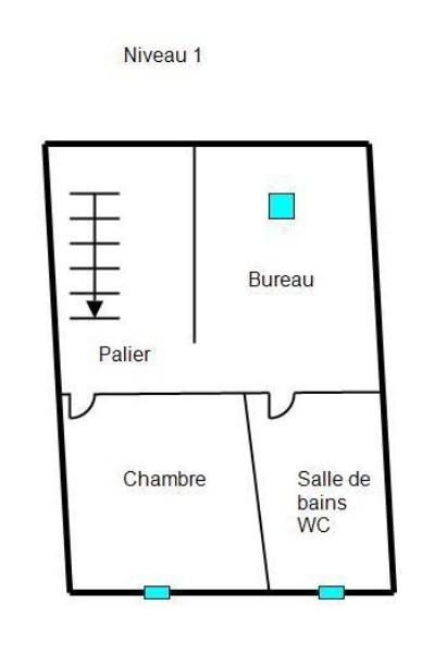 Palier distribuant un dégagement avec salle de bain /WC, et une pièce servant de chambre.