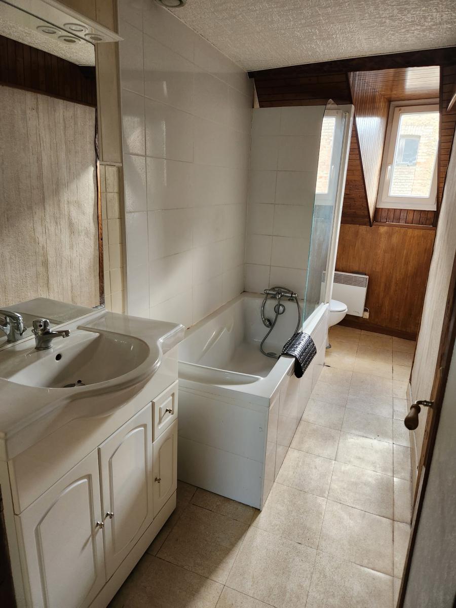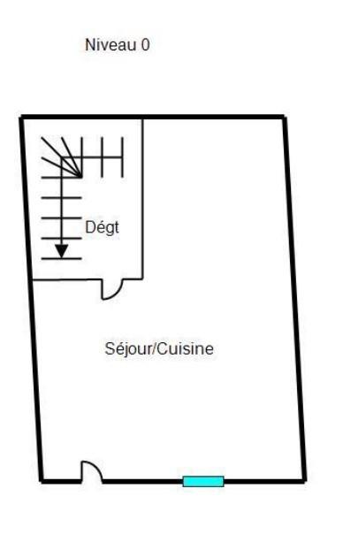 IDÉAL pour INVESTISSEMENT LOCATIF au cœur de BEAUMONT SUR SARTHE : Entrée dans pièce de vie avec poêle à bois, ouverte sur kitchenette. Dégagement avec escalier.