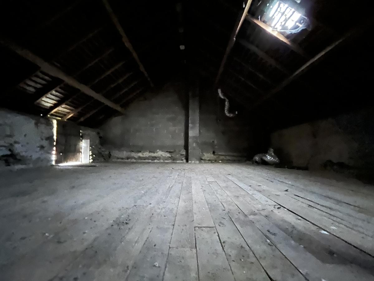 - Une pièce, un garage et un grenier.