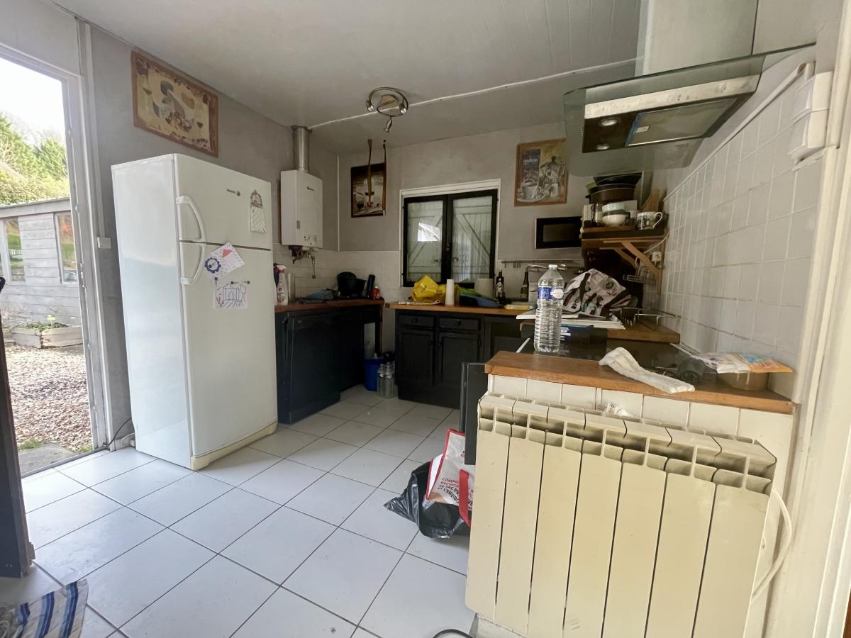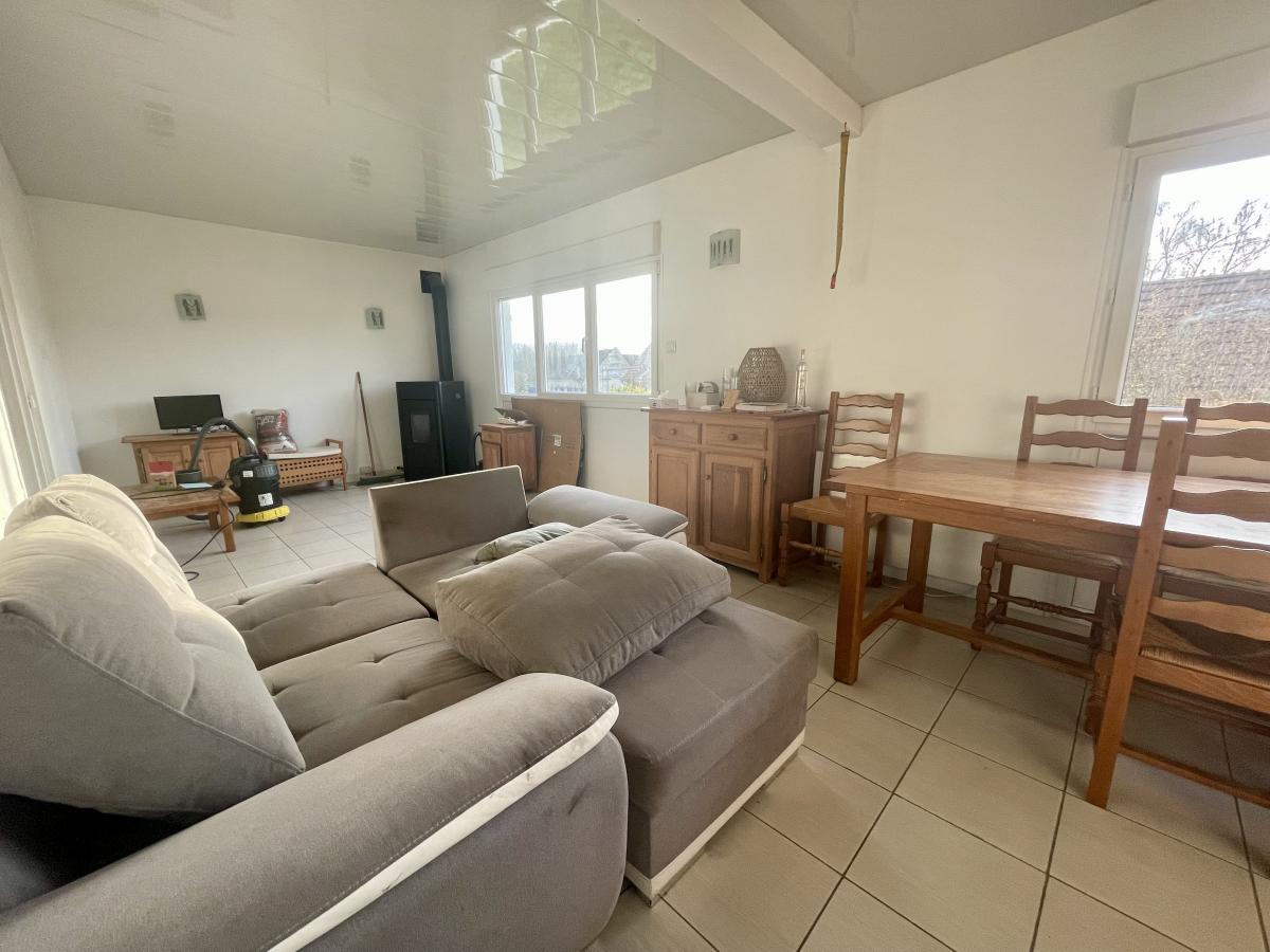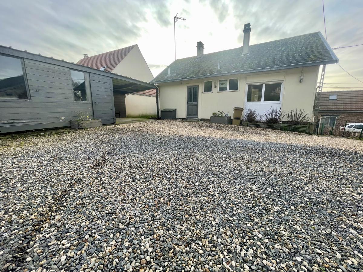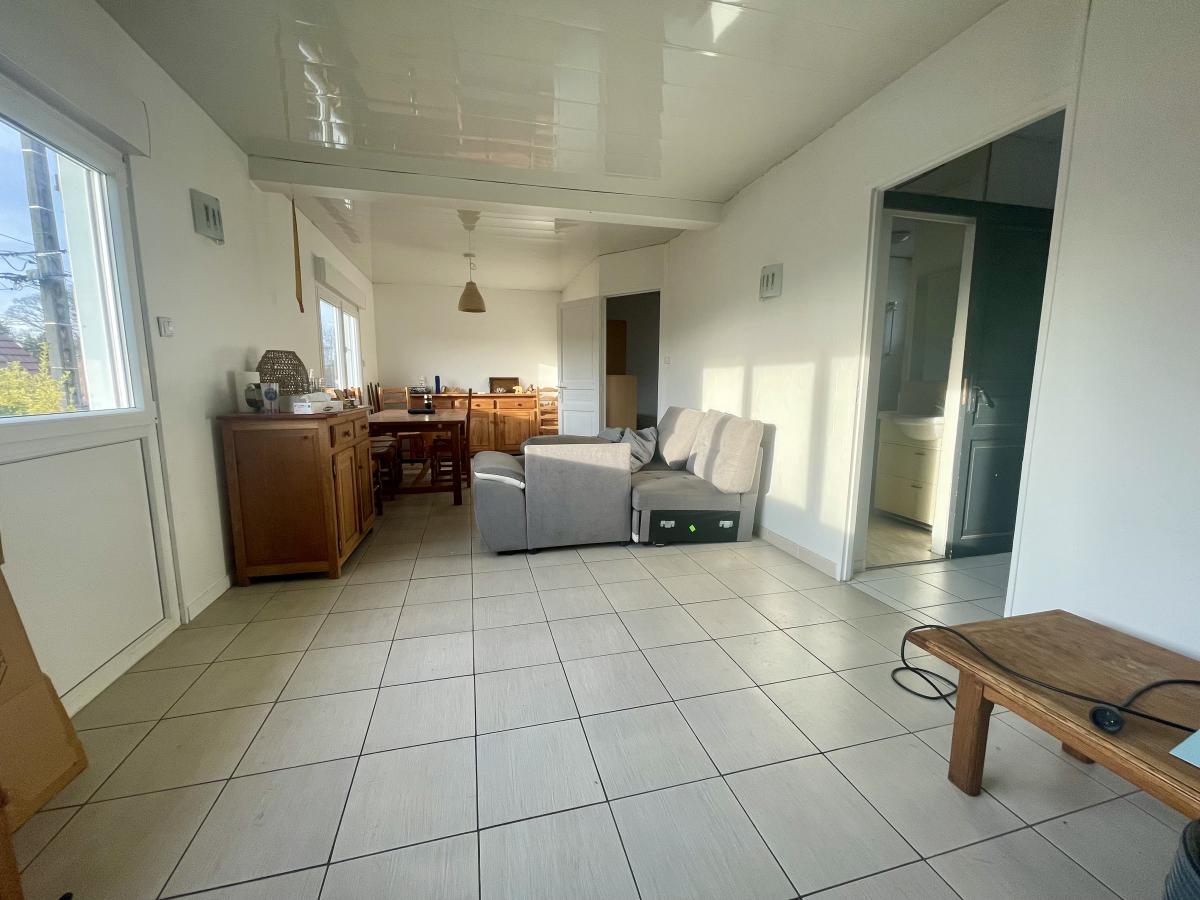 Maison individuelle de plain-pied sur la commune de Carlepont (60170), plain pied de type Phenix des année 70 comprenant entrée sur cuisine, séjour avec poêle à pellet, salle de douche, wc et une chambre. Menuiserie double vitrage Pvc avec volets roulants électriques.