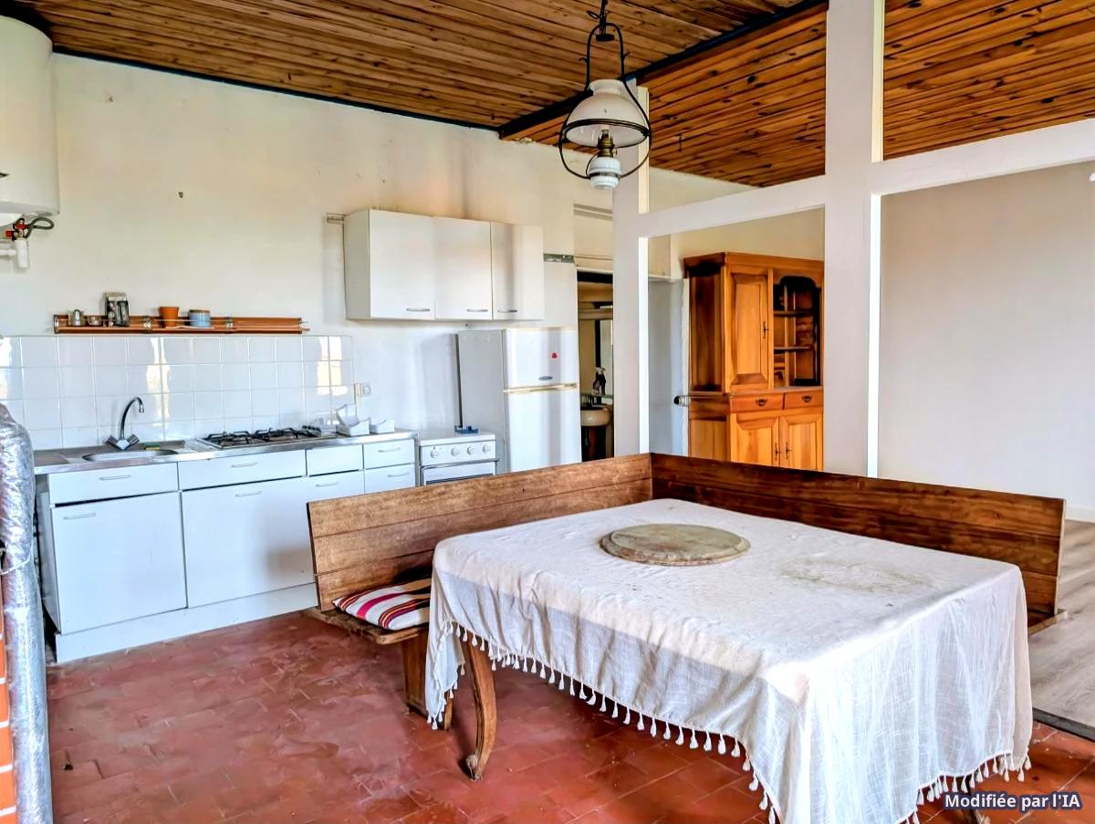 Une maison d'habitation de plain-pied d'environ 64m² comprenant : une pièce principale avec cuisine et séjour, une salle d'eau, une chambre.