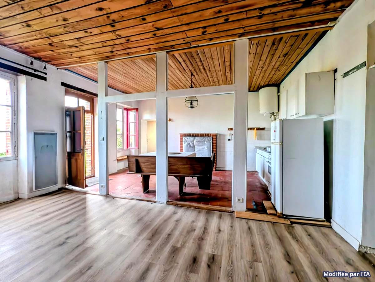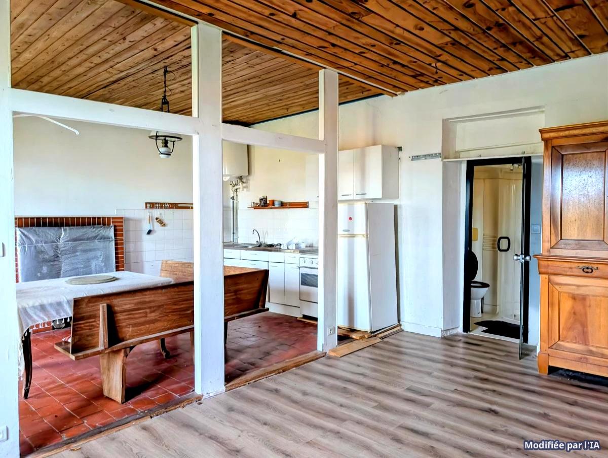 Proche du centre de PORT SAINT PERE, Un bâtiment d'environ 64m² sur un terrain de 490m² (avec chemin indivis de 1313m² en plus), comprenant :