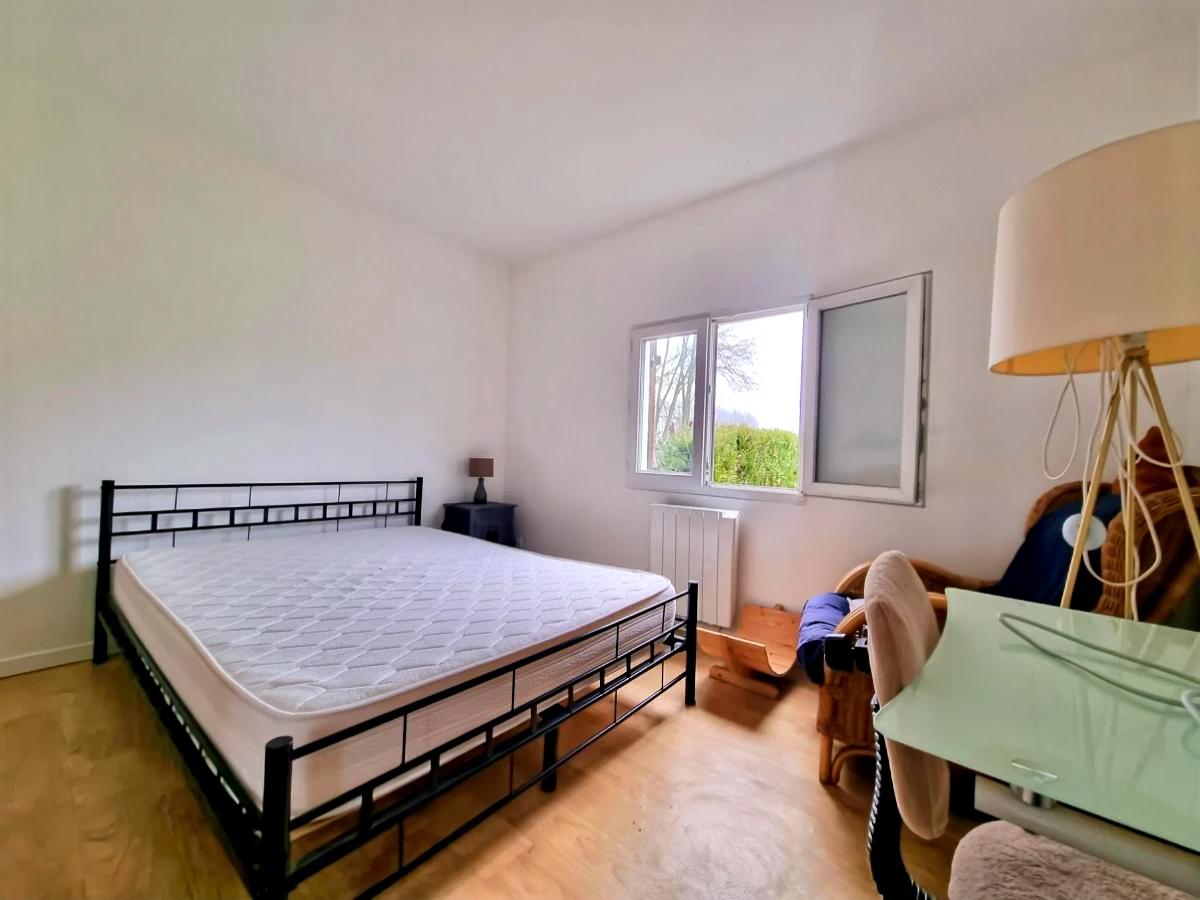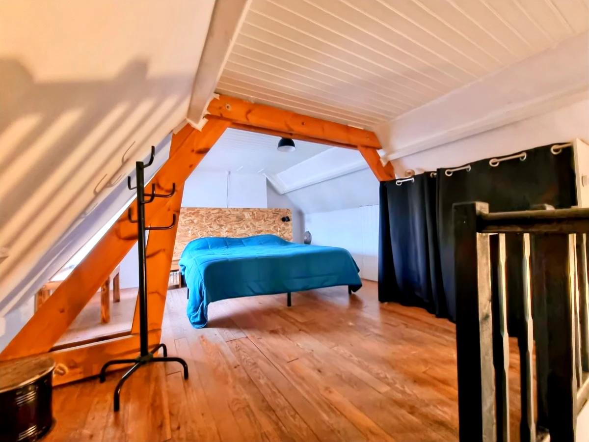 A l'étage une chambre en mezzanine de 18m² au sol.