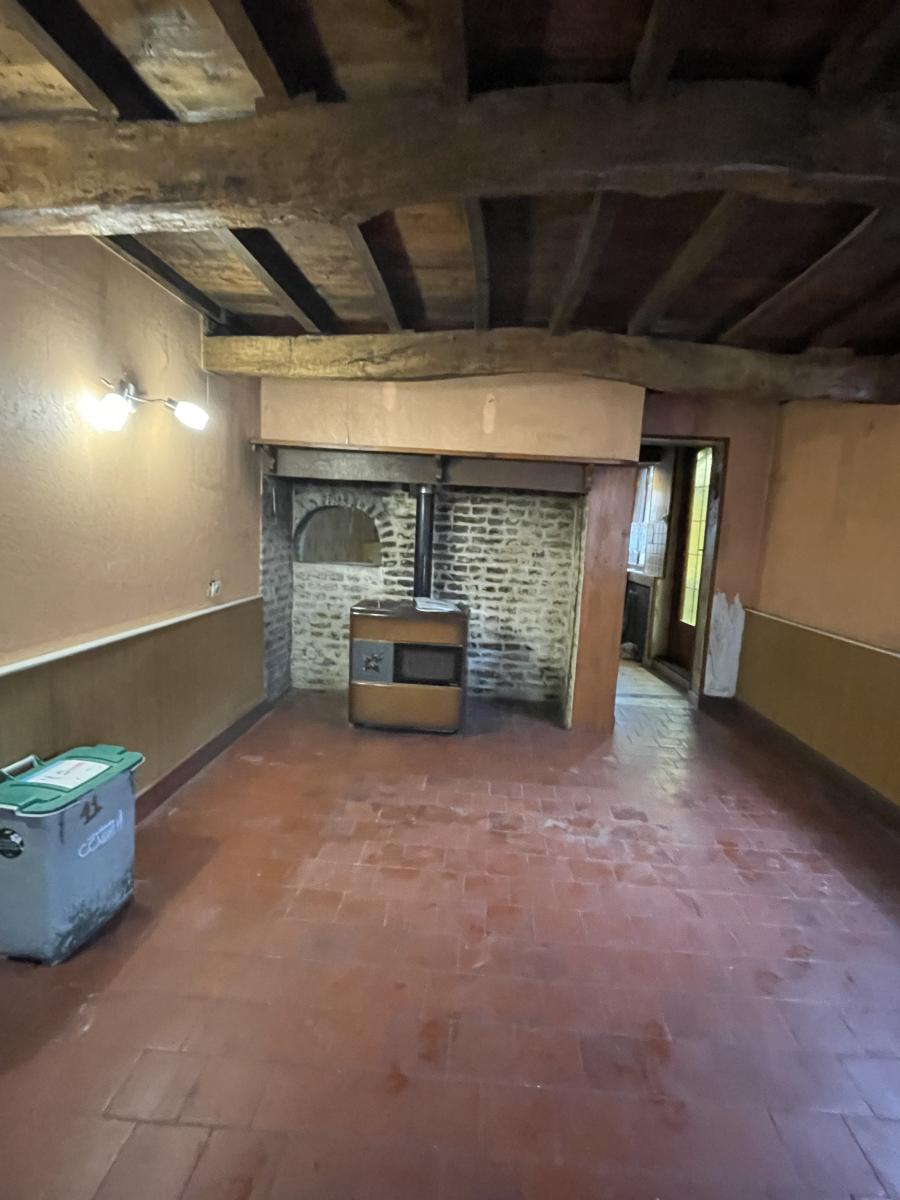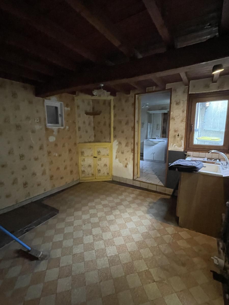 manger - cuisine - salle d'eau avec wc - cave - Au 1er 2 pièces. Simple vitrage bois. chauffage par poêle. cour et dépendance.