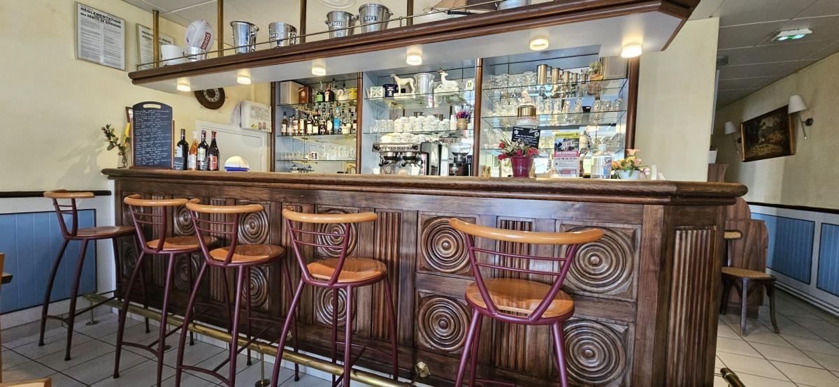- Une salle de petit déjeuner à droite du hall avec un bar en bois de bonne facture.