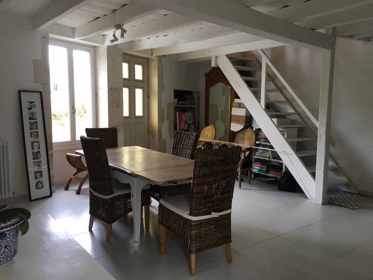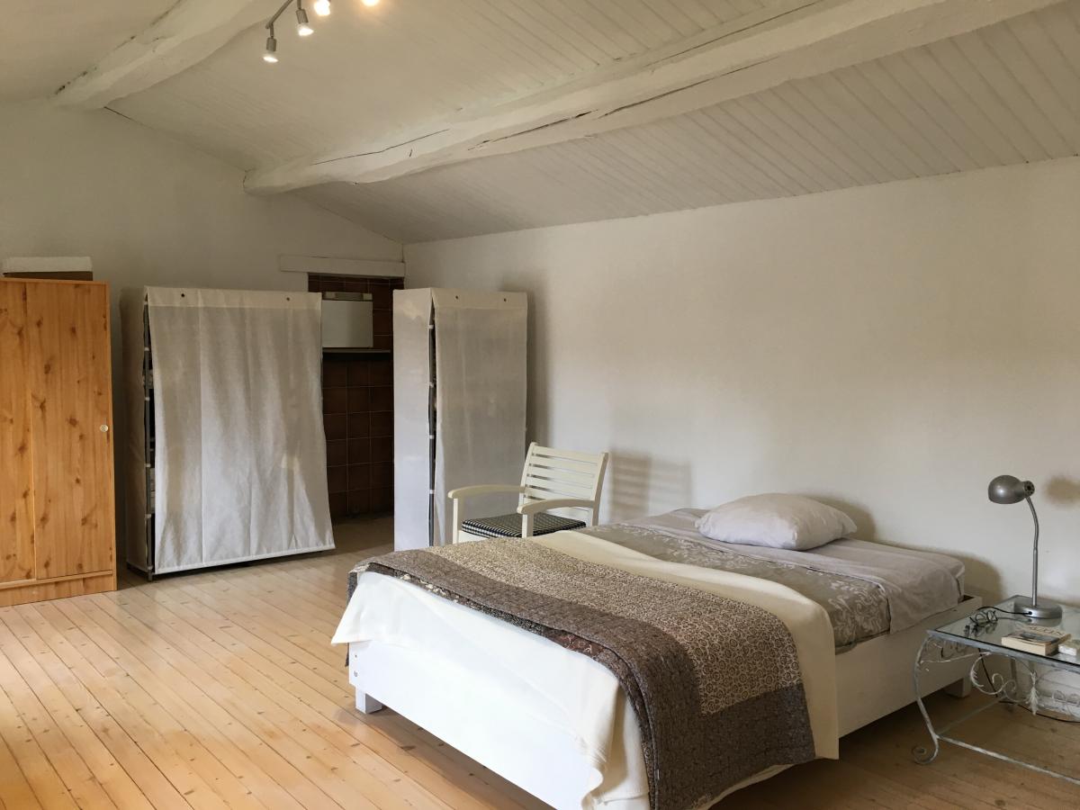 Premier étage : Palier mansardé - Une grande chambre avec arrivée et évacuation d'eau pour une éventuelle salle d'eau -