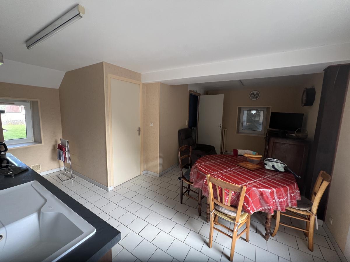 LA FERTE MACE, belle longère en pierres exposée ouest, comprenant actuellement de plain-pied : salle à manger, cuisine équipée, salle d'eau, WC, deux chambres de 25 et 33 m² avec chacune un cabinet de toilettes.