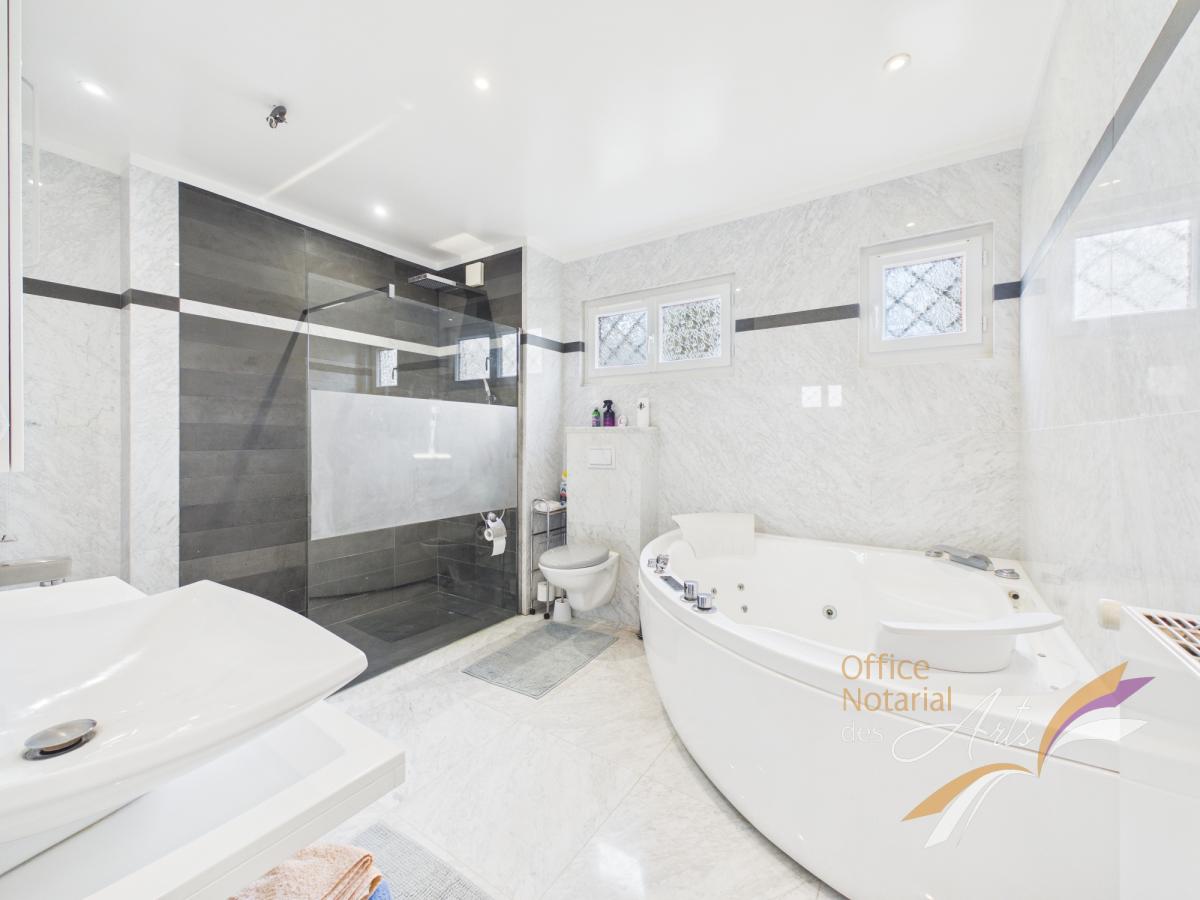 Au rez-de-chaussée: entrée sur une vaste cuisine équipée professionnelle ouverte sur le séjour, couloir desservant 2 chambres dont une avec dressing, salle de bains avec baignoire balnéo, douche italienne et wc, buanderie, wc