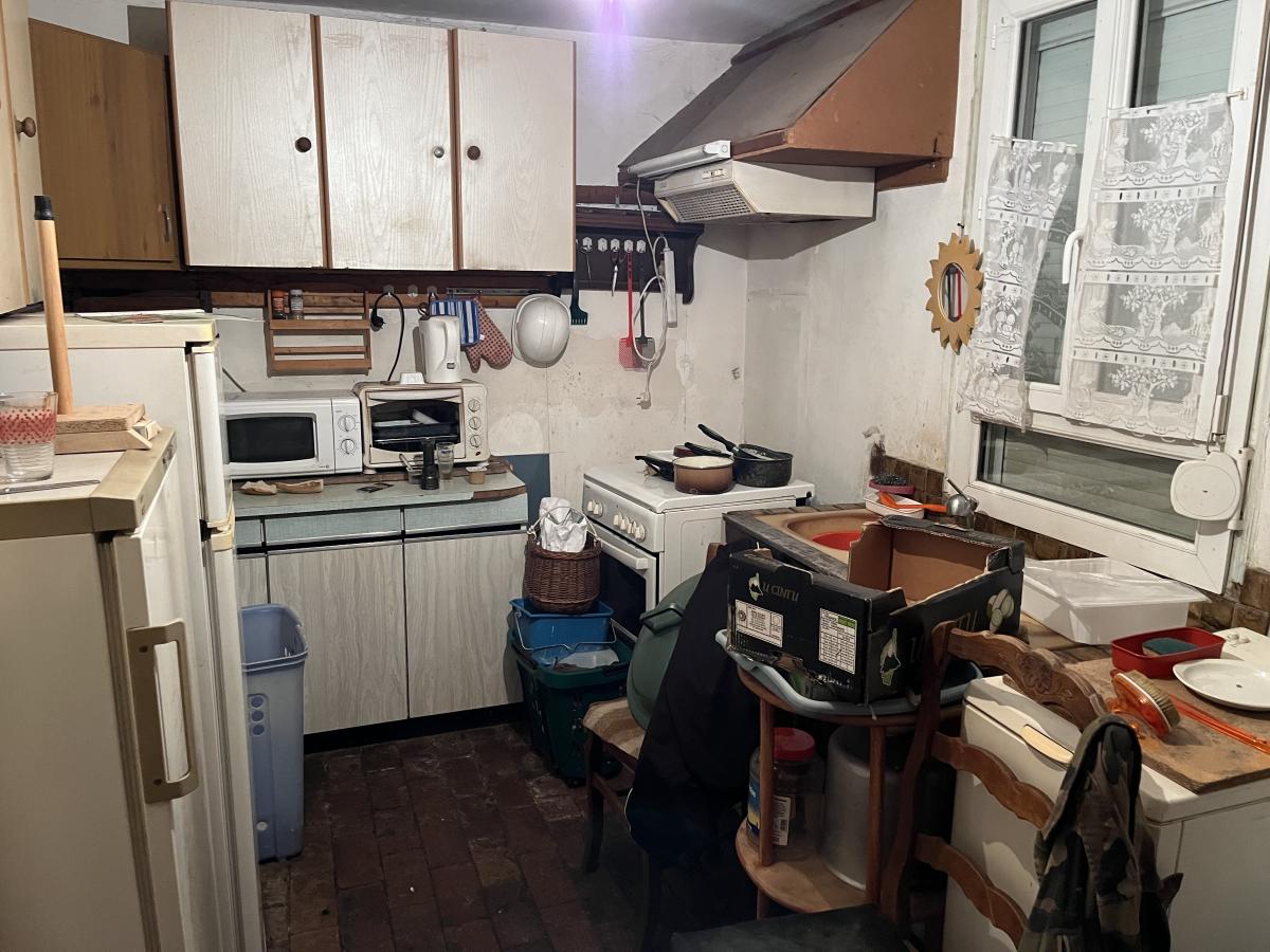 Maison de ville à rénover comprenant séjour , cuisine , à l'étage deux chambres dont une palière , ( fenêtres pvc double vitrage RDC et bois simple vitrage étage ) , pas de salle d'eau , WC extérieur , petite cour , le tout sur 54 m² de terrain .