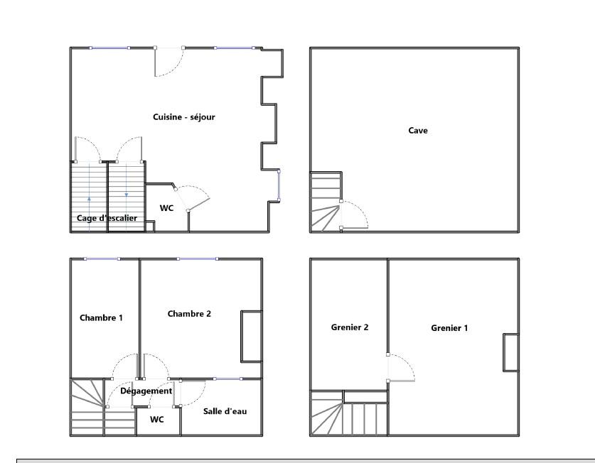 Grenier au dessus et cave en sous-sol. Chauffage électrique. Porte d'entrée en PVC. Le tout sur une parcelle de 42m².