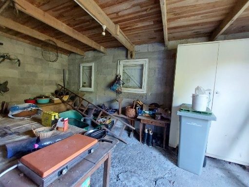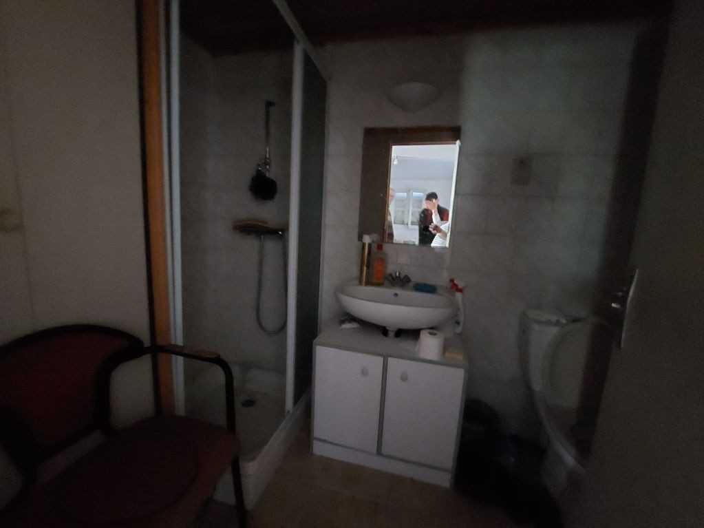 Une maison mitoyenne à rénover entièrement comprenant au rez de chaussée une pièce de vie cuisine et séjour avec un cheminée foyer ouvert, une arrière cuisine, une salle d'eau avec un wc.
