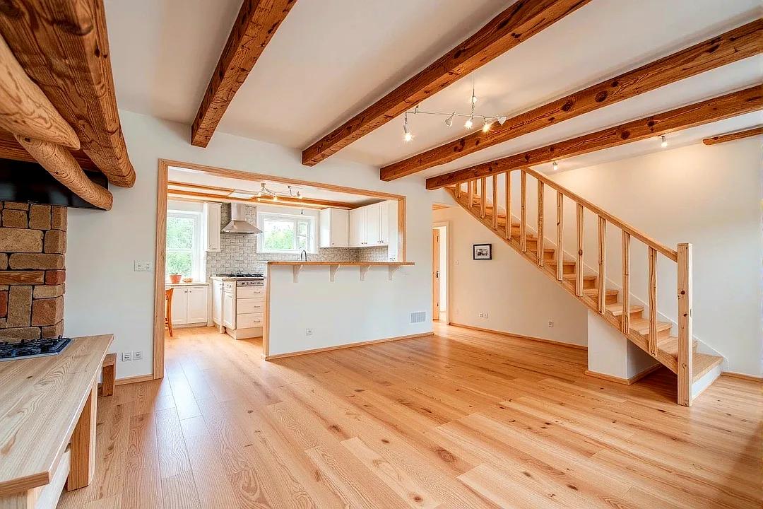 Elle se compose d’une pièce de vie avec cheminée à foyer ouvert, d’un espace cuisine, d’un WC, de deux chambres, ainsi que d’une salle de bains.