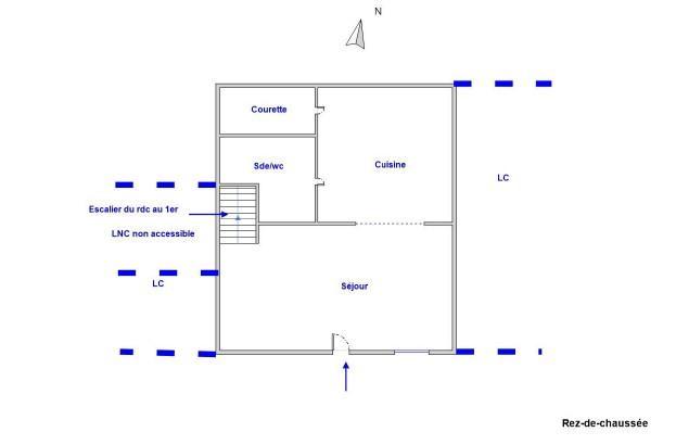 Logement fonctionnel idéal pour de investissement locatif de 57m² au cœur de VIVOIN, comprenant une pièce de vie avec en enfilade une cuisine avec cheminée, une salle d'eau avec WC, et accès à une petite cour.