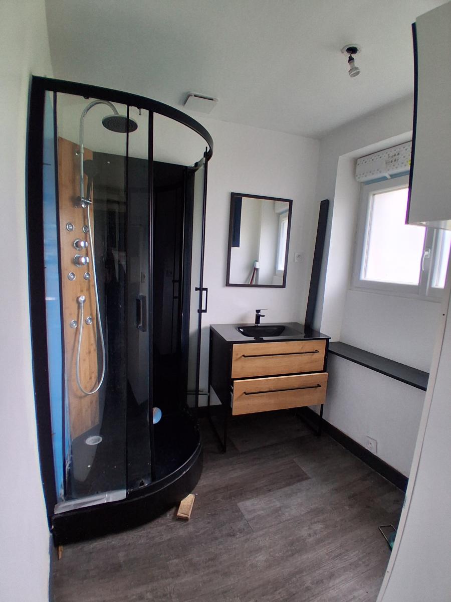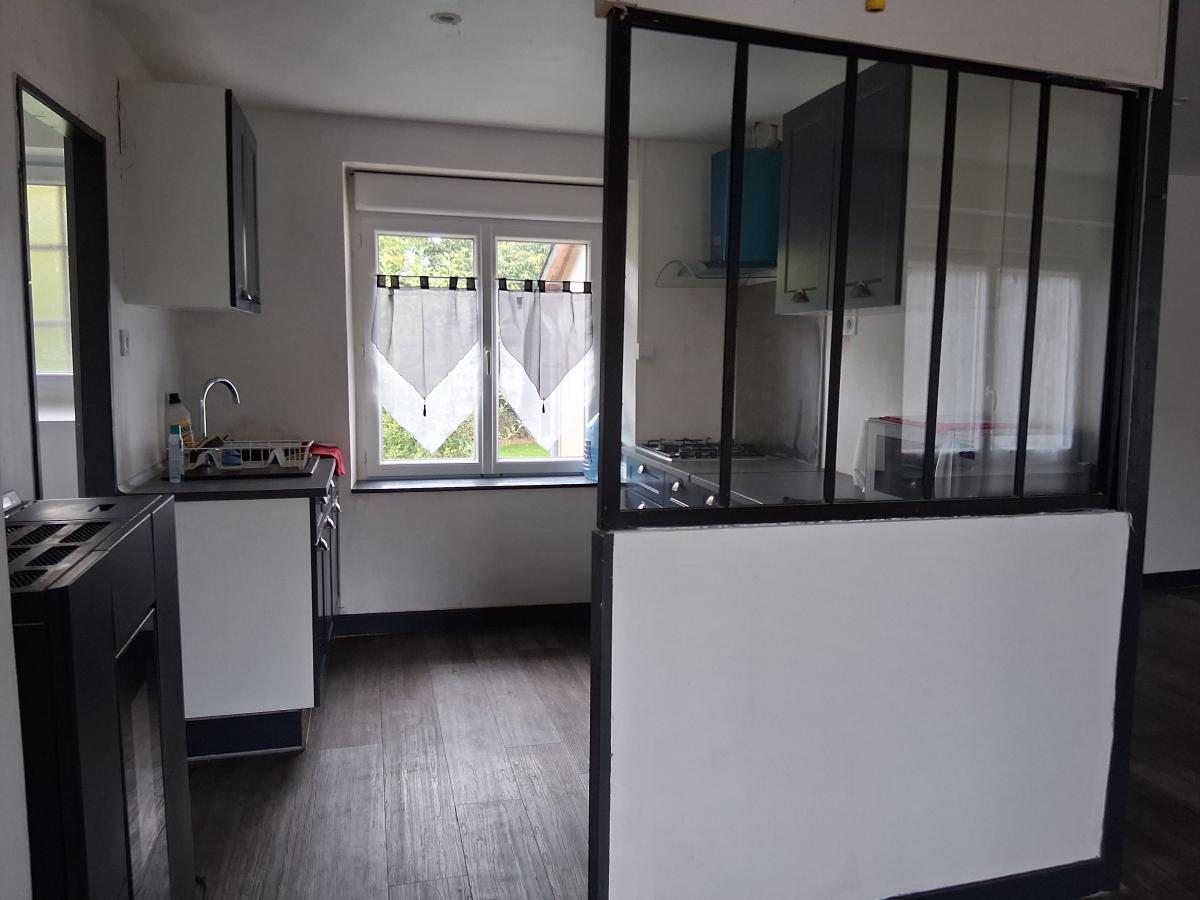 Maison de village comprenant : RDC : pièce de vie avec coin cuisine aménagé (poêle à granulés), cheminée insert, deux chambres, salle d'eau (douche) et WC.