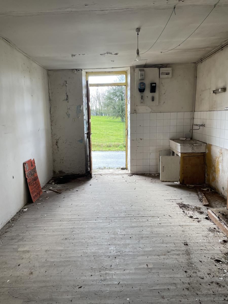 Une maison en pierres sous ardoises, mitoyenne d'un côté, à rénover et composée d'une cuisine, deux chambres, douche, wc, débarras, cellier à l'arrière en appentis. Grenier au-dessus. Terrain pour 2120 m2 dont 330 m2 en face.