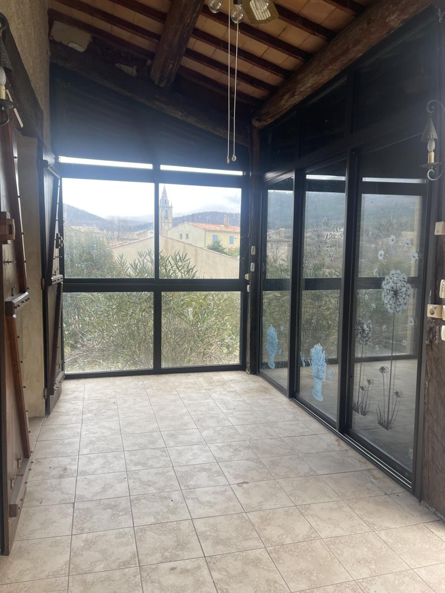 Le séjour lumineux ouvert sur la véranda orientée plein sud, offre une belle vue dégagée.