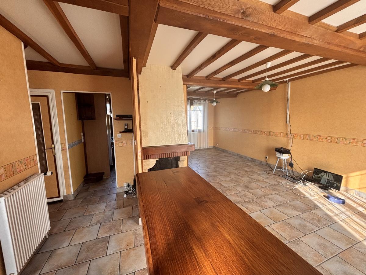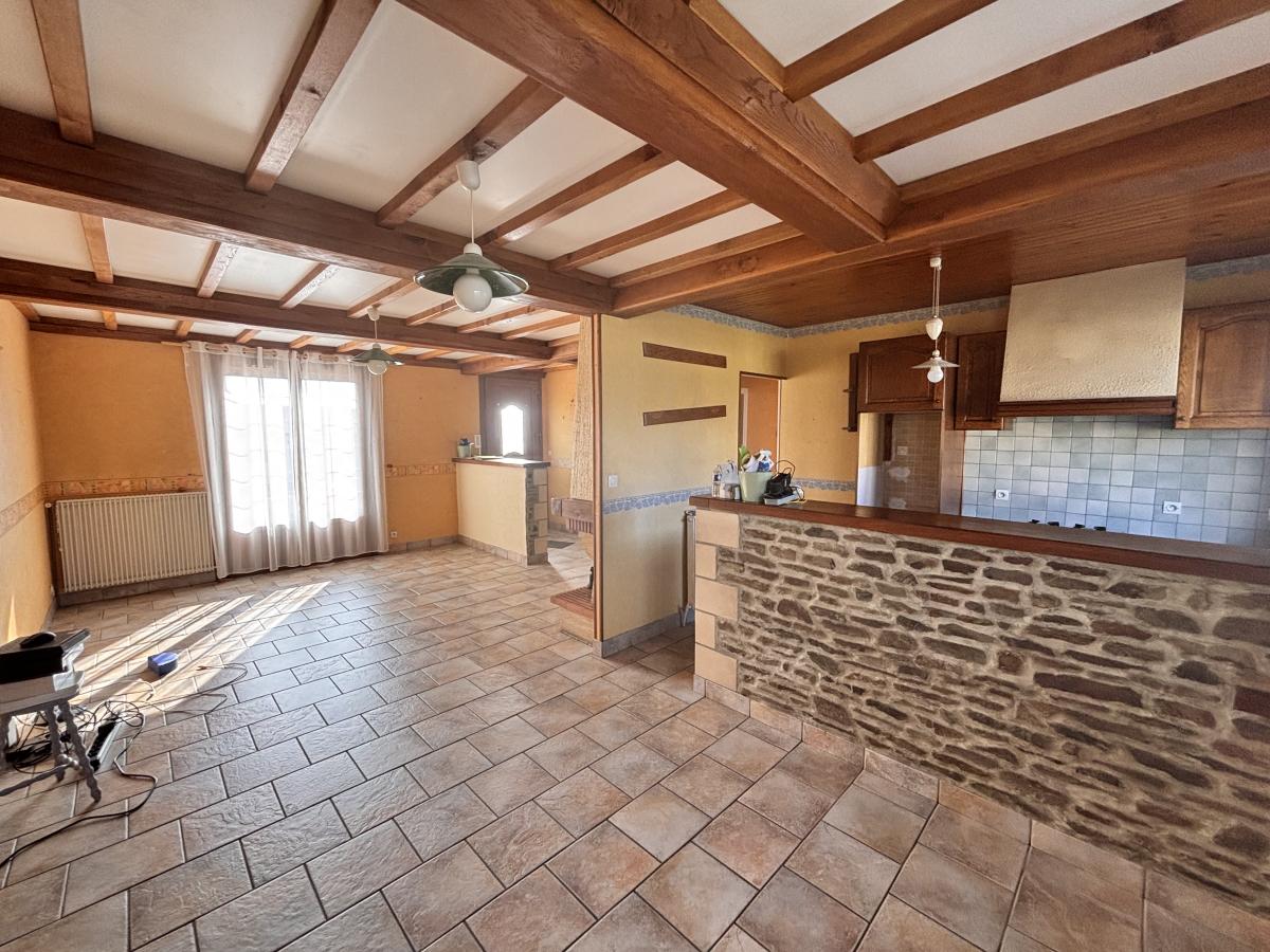 Entrée, pièce à vivre avec cuisine ouverte, dégagement, deux chambres, salle d'eau et wc