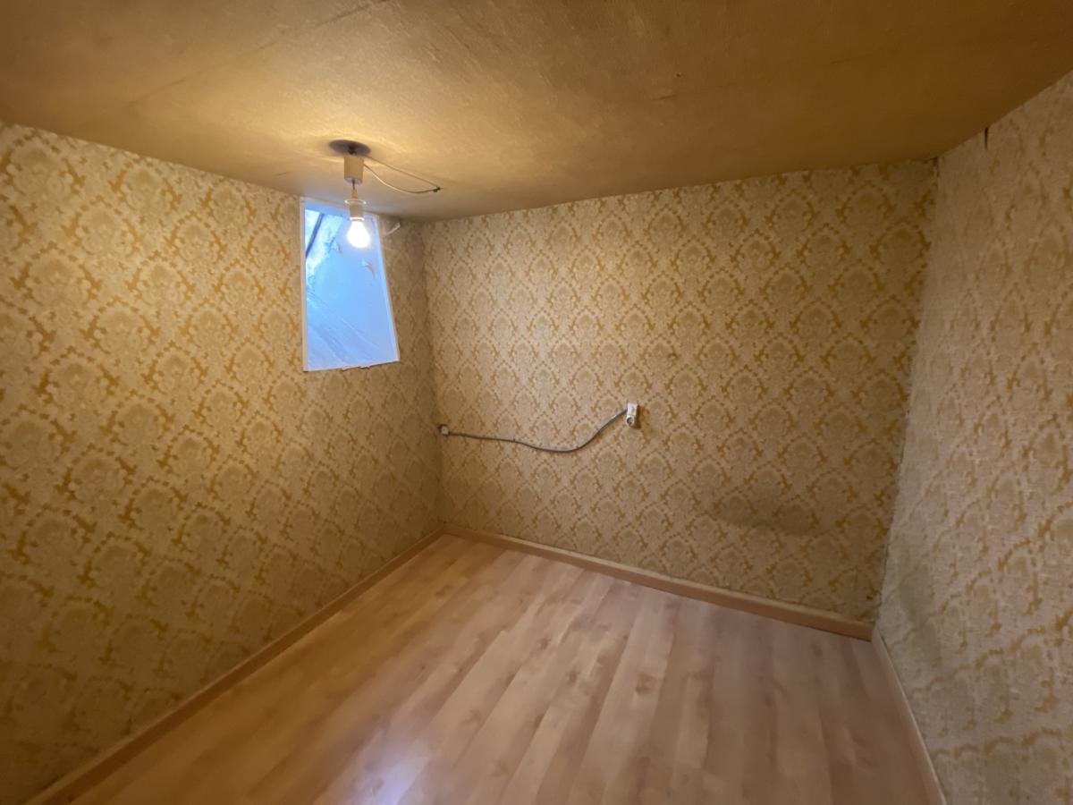 RDC un séjour d'environ 17.74m2, cuisine aménagée, une chambre, salle d'eau avec douche, vasque et WC.