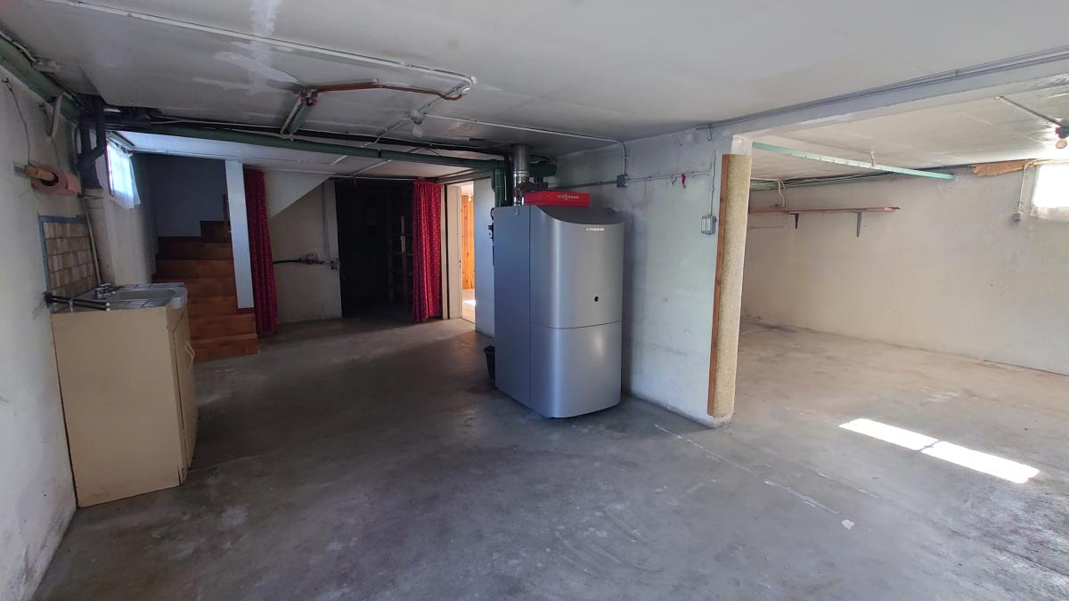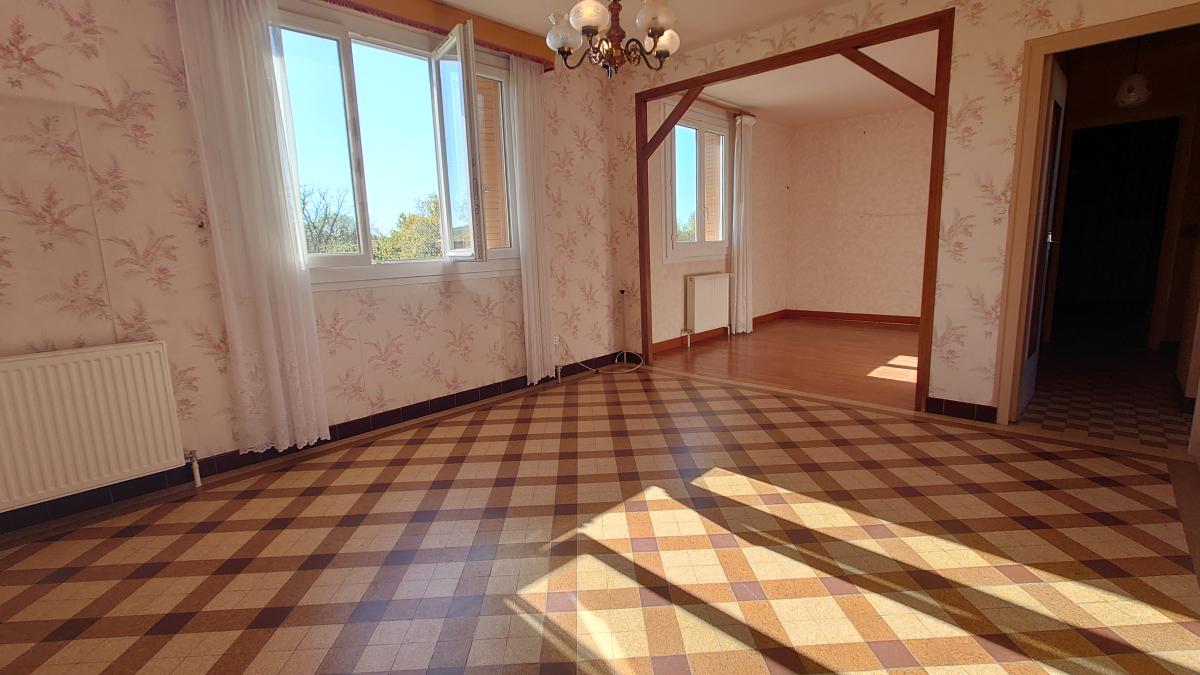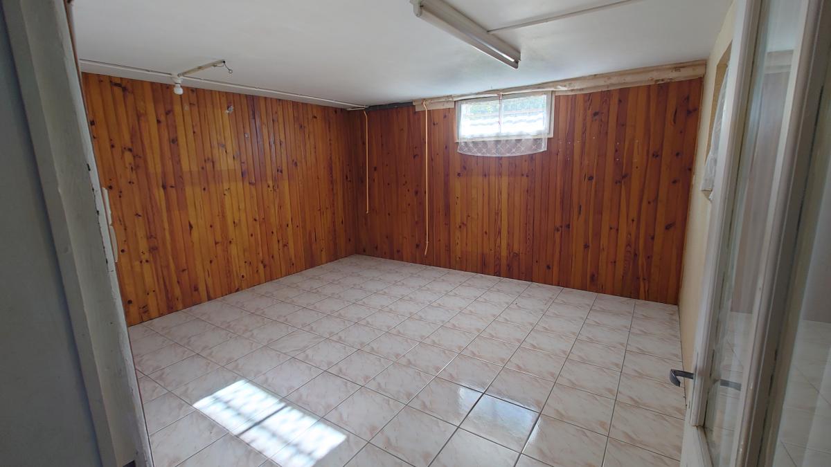 Pavillon édifié sur sous sol total surélevé milieu année 60 comprenant entrée, séjour d'environ 25 m², cuisine indépendante, couloir desservant deux chambres, salle d'eau (parfait état), wc indépendant. Garage, chaufferie, cave et autre pièce en sous sol.
