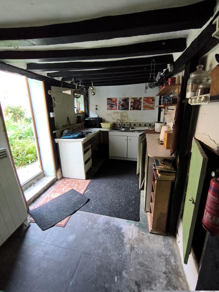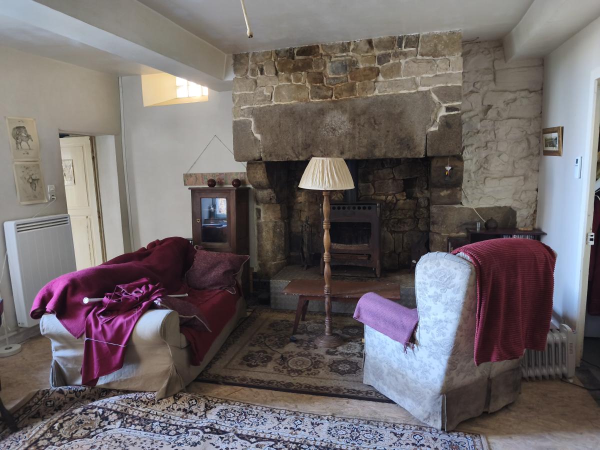 Le rez-de-chaussée comprend un séjour avec poêle à bois, cuisine, salle de bains avec wc.