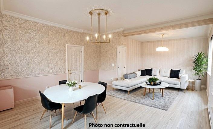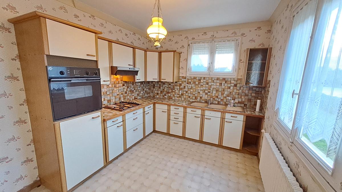 - Au premier étage : Entrée, w.c., cuisine, séjour-salon, couloir avec placard, deux chambres avec placards, salle de bains.
