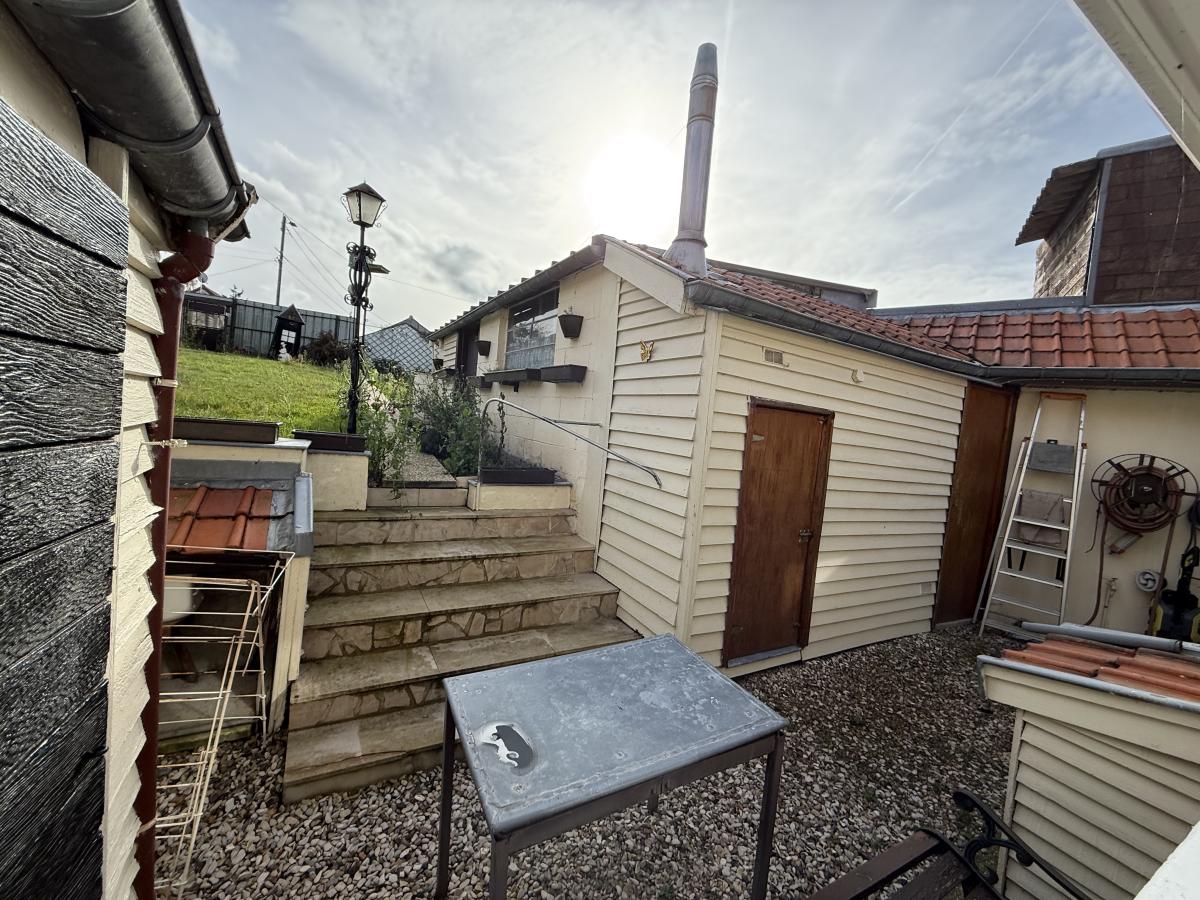 En extérieur, une courette en cailloux avec une dépendance (chaudière), un petit débarras avec le ballon électrique et une dépendance avec un atelier et la cuve à fioul.