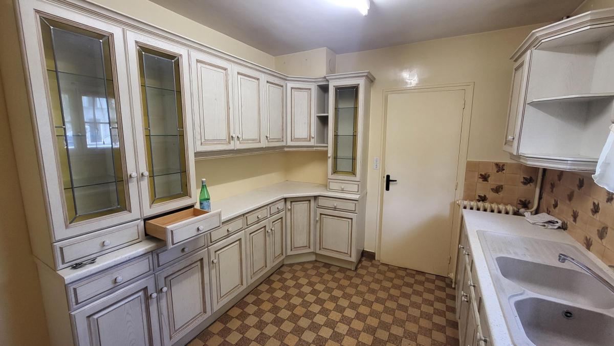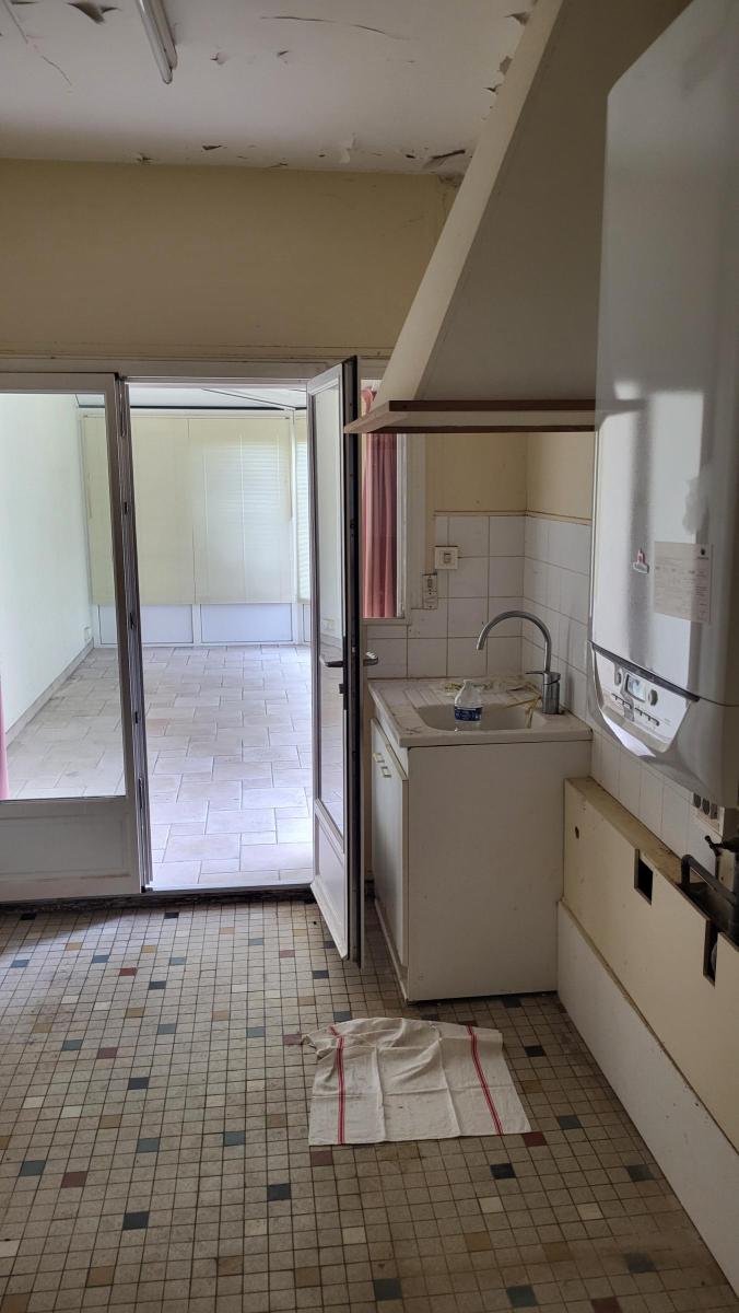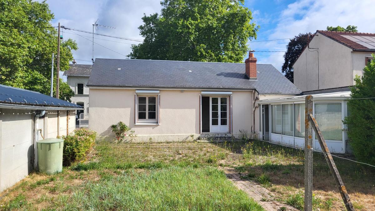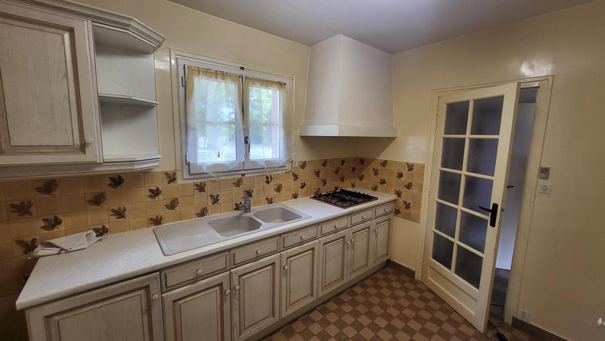 Une maison d'habitation de plain pied comprenant une entrée, dégagement, cuisine aménagée, séjour, salle de bains, WC, deux chambres, arrière-cuisine.