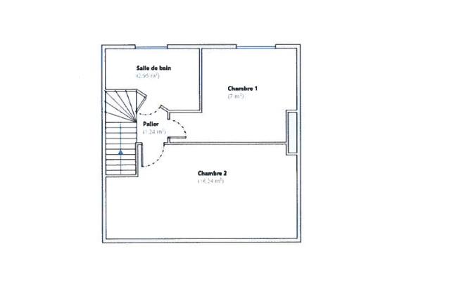 L'étage vous conduit sur un palier desservant une chambre de 16.24 m², un bureau de 7 m² et une salle de douche.