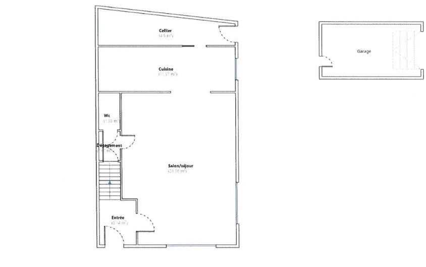 Vous y trouverez au rez-de-chaussée une entrée donnant accès à la cave, au salon-salle à manger (24.36 m²), à la cuisine équipée de 11m37, le cellier et les WC avec lave-mains ;