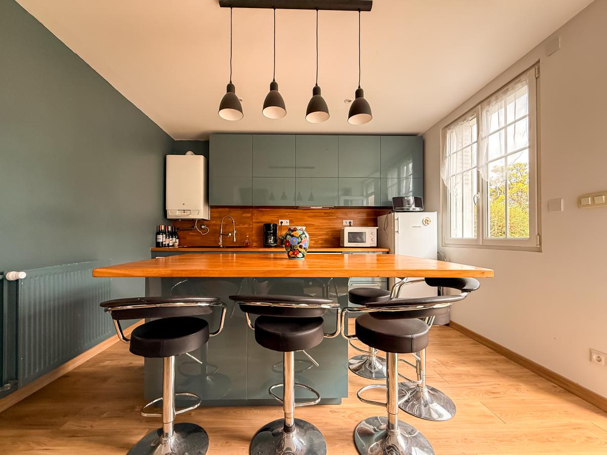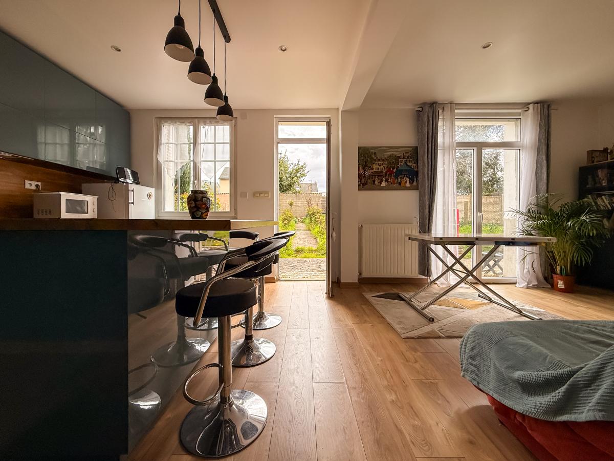 Au rez-de-chaussée: Entrée, pièce de vie avec cuisine ouverte de 22 m² donnant sur jardin exposé plein sud, chambre de 12,51 m², salle d'eau avec WC.