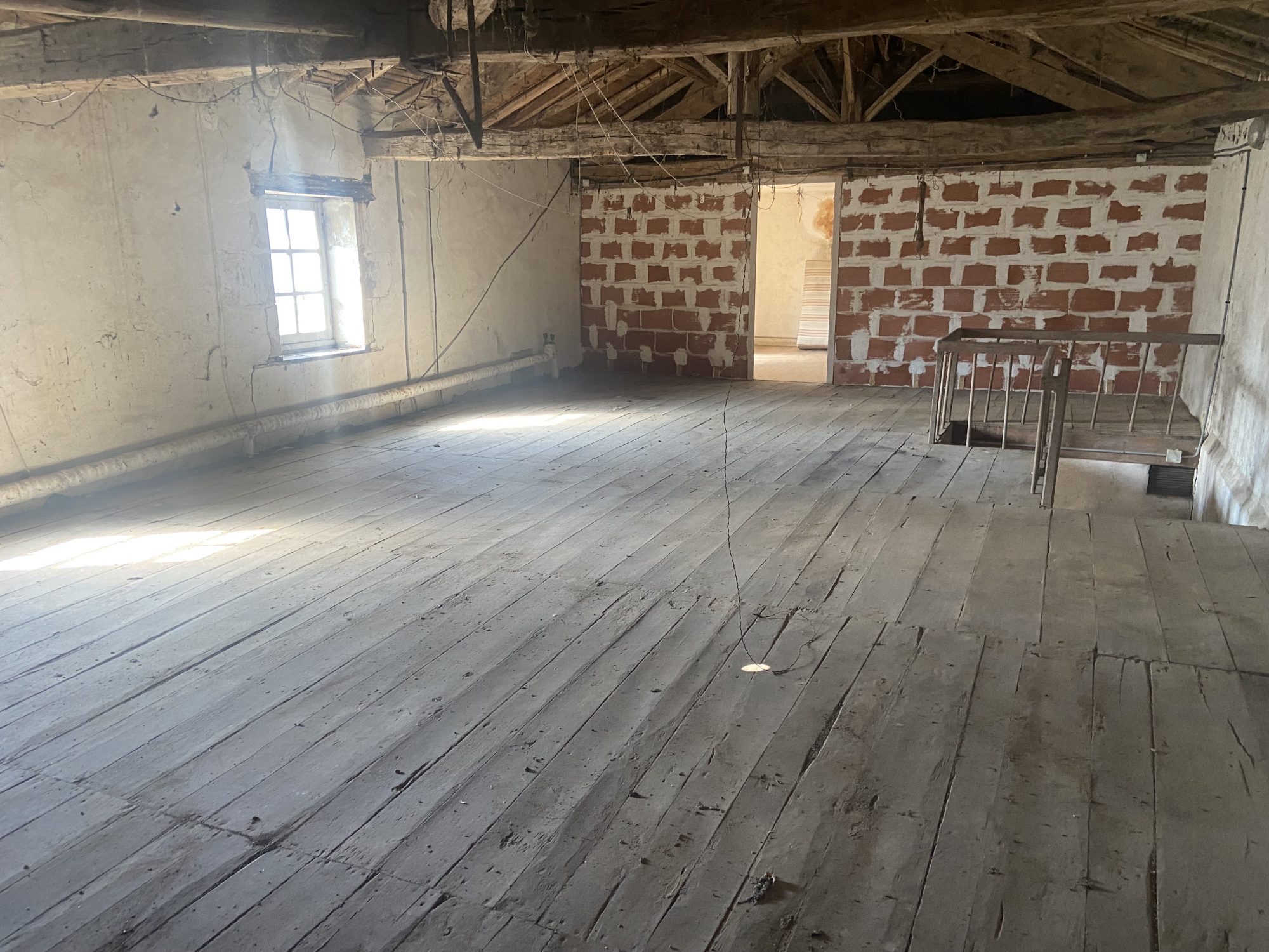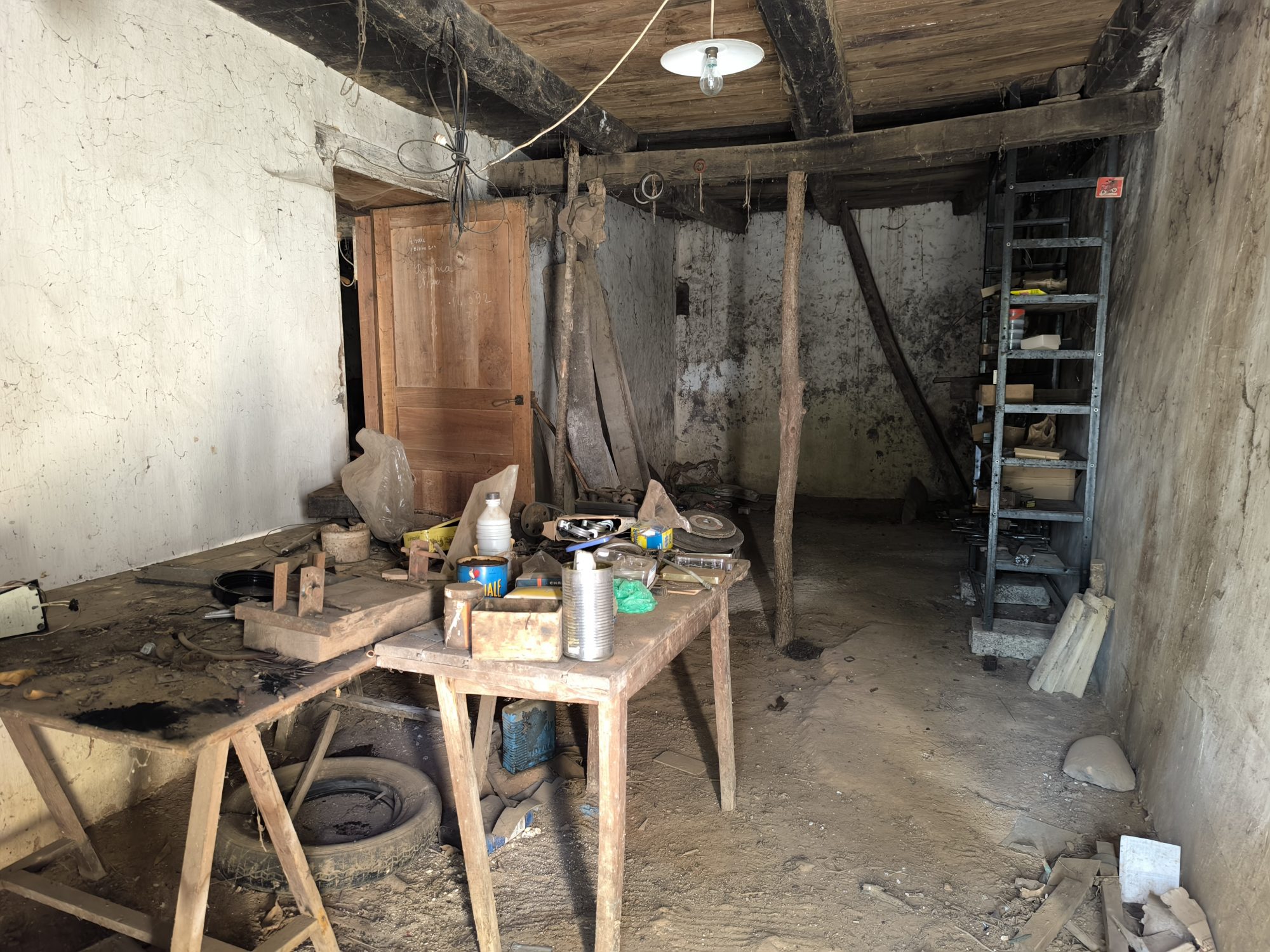 Exposée sud-ouest, cette maison de campagne ne demande qu'à revivre et comprend : une entrée-cuisine desservant une pièce parquetée avec cheminée, une seconde pièce parquetée avec cheminée et poêle à bois, une salle d'eau, un wc. A l'étage, le grenier aménageable comprend une pièce. Cave sous partie. A l'arrière de la bâtisse, ancienne maison disposant d'une pièce avec cheminée et grenier et un hangar double dans le prolongement. De l'autre côté de la rue, ancienne écurie et deux ateliers. Cour, jardin et terrain.