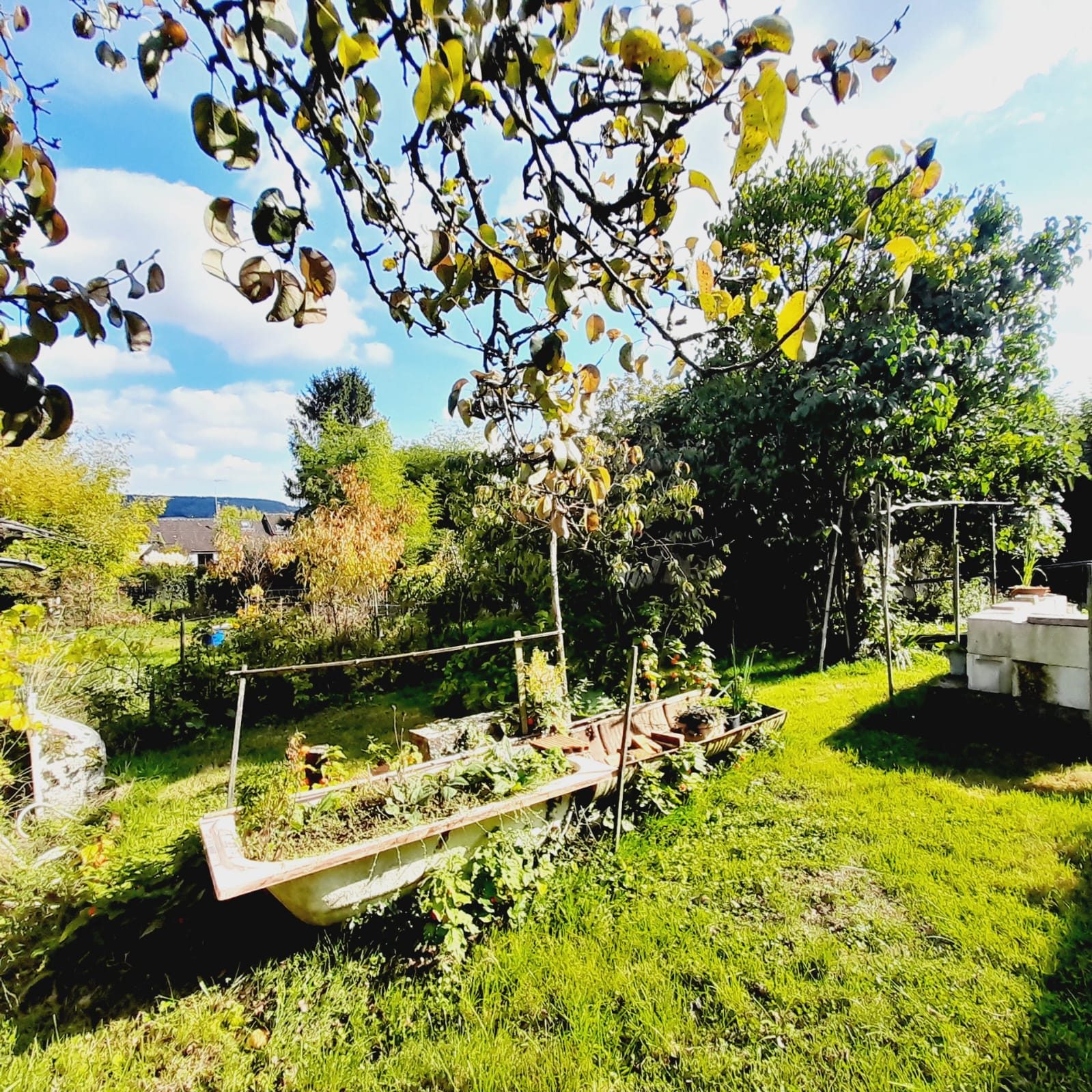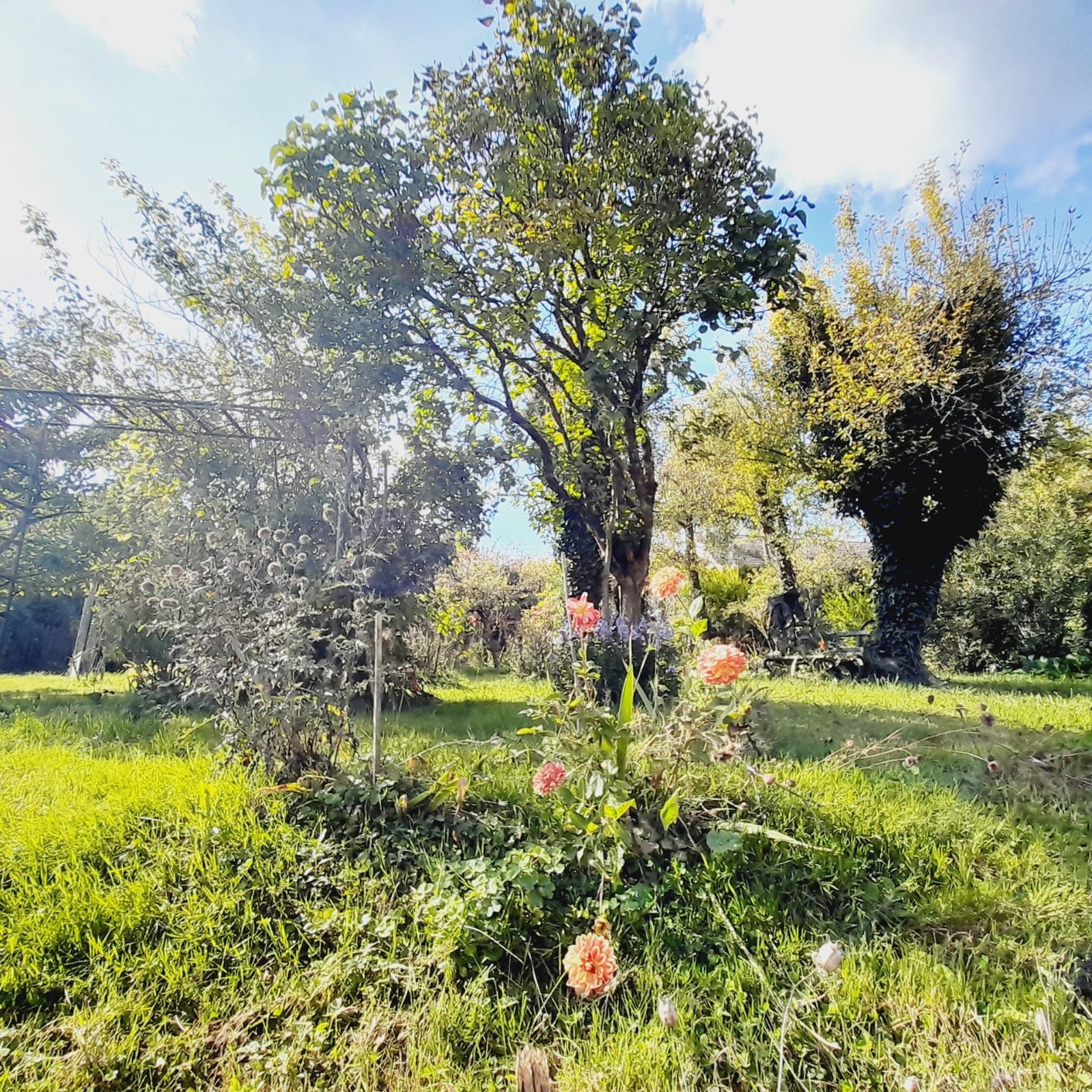 Terrain clos et arborée d'environ 1113 m² selon cadastre.
