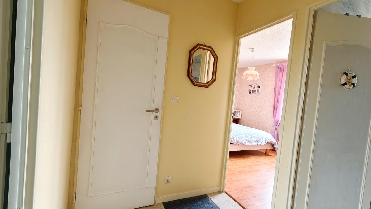 Une entrée ouvrant sur un agréable espace de vie comprenant salle à manger et salon avec cheminée insert, une cuisine, deux dégagements desservant l’espace nuit, deux chambres dont une avec penderie intégrée, une salle de bains ainsi qu’un WC indépendant.