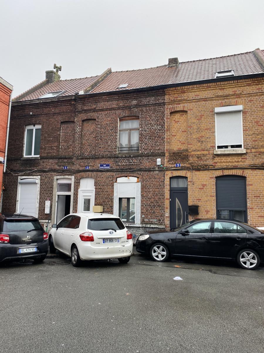 Maison des années 30, avec une cour, située rue Charlemagne, composée d'une entrée, d'un double séjour, d'une cuisine, d'une salle de bain avec un wc.