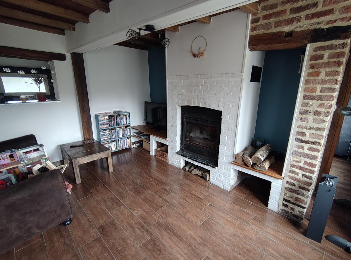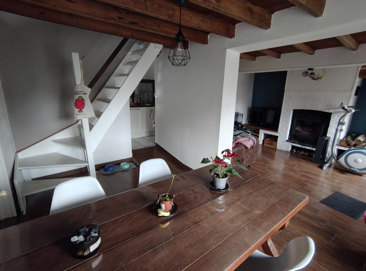 - Au rez-de-chaussée : salon/séjour avec une cheminée feu de bois, cuisine aménagée et équipée, cellier, chambre, bureau et salle de bains avec WC ;