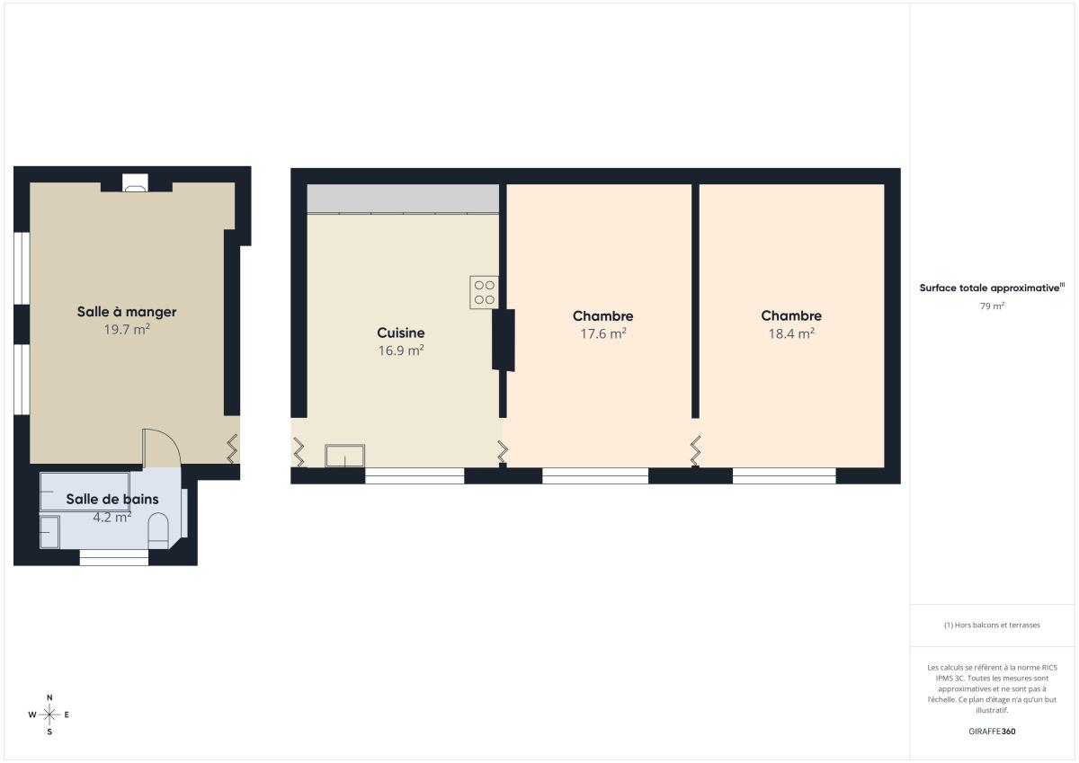 Au Rdc : entrée cuisine, séjour , 2 chambres, salle de bains avec wc