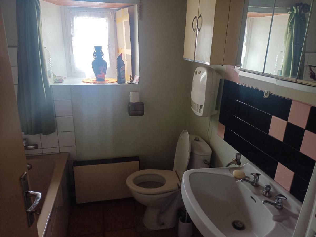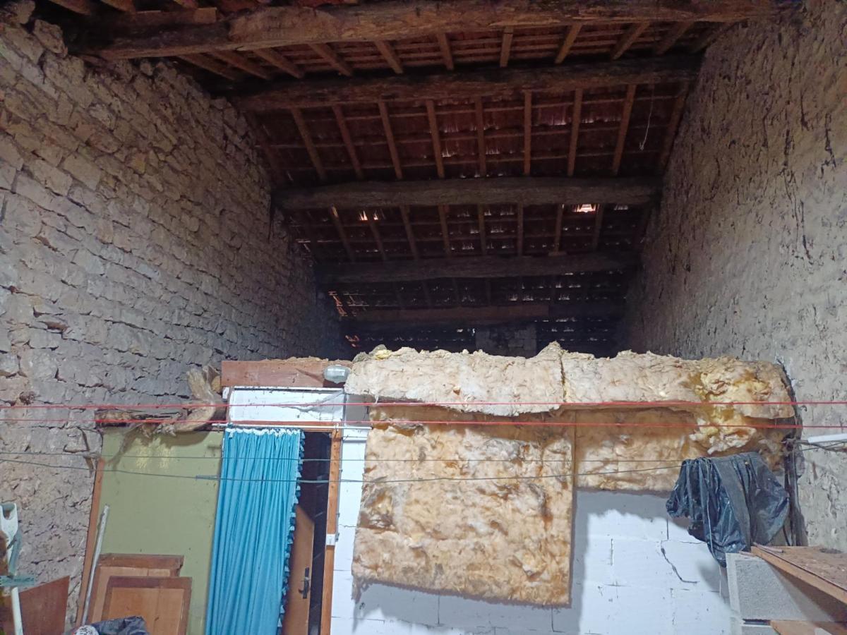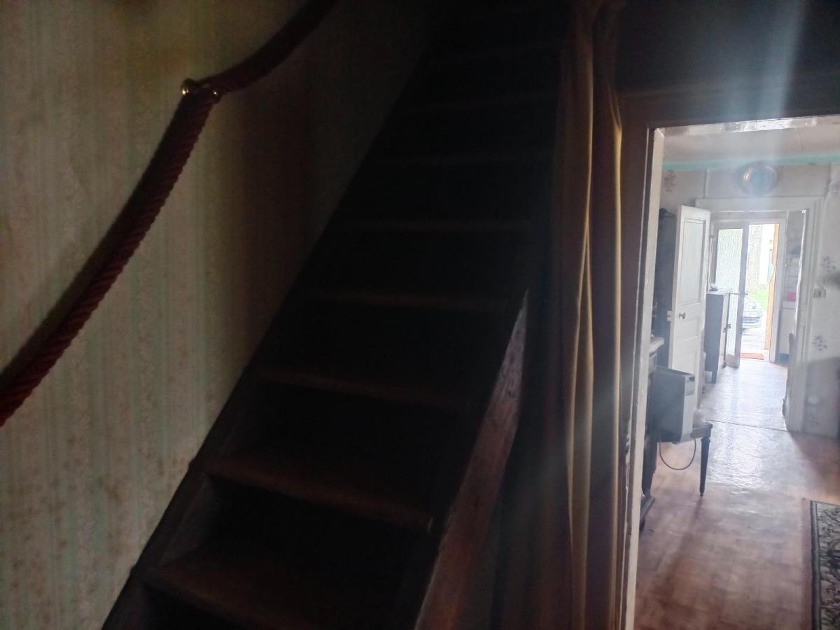 A l'étage : palier, deux chambre, une pièce borne, accès grenier.