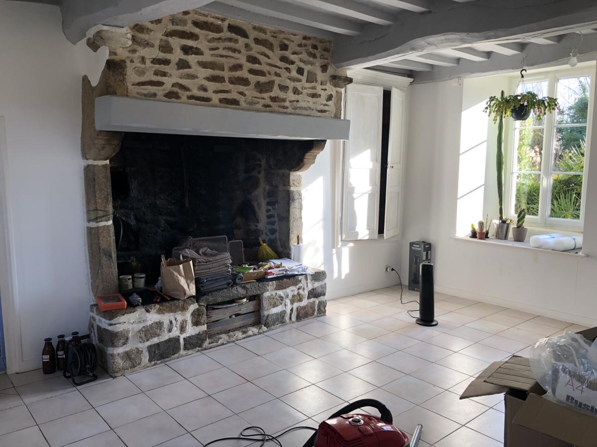 Au rez-de-chaussée : entrée dans une cuisine, un séjour avec une grande cheminée, une salle de bains, wc.