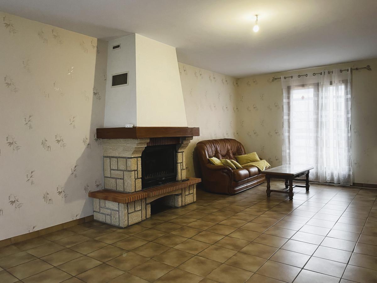 Maison de plain-pied, proposant une entrée desservant cuisine aménagée, un dégagement, une grande pièce de vie traversante avec cheminée insert, deux chambres, WC et une salle de bain.