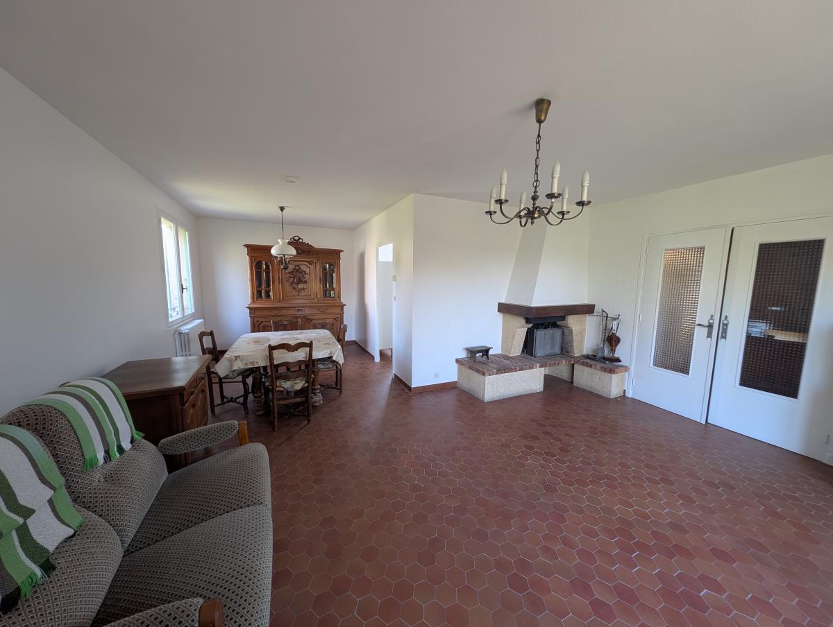 De plain-pied, elle offre une entrée accueillante, un lumineux espace salon-séjour avec cheminée, une cuisine indépendante, une salle d’eau, des WC séparés, un cellier ainsi que deux belles chambres. Son agencement modulable permet aisément la création d’une troisième chambre selon vos besoins.