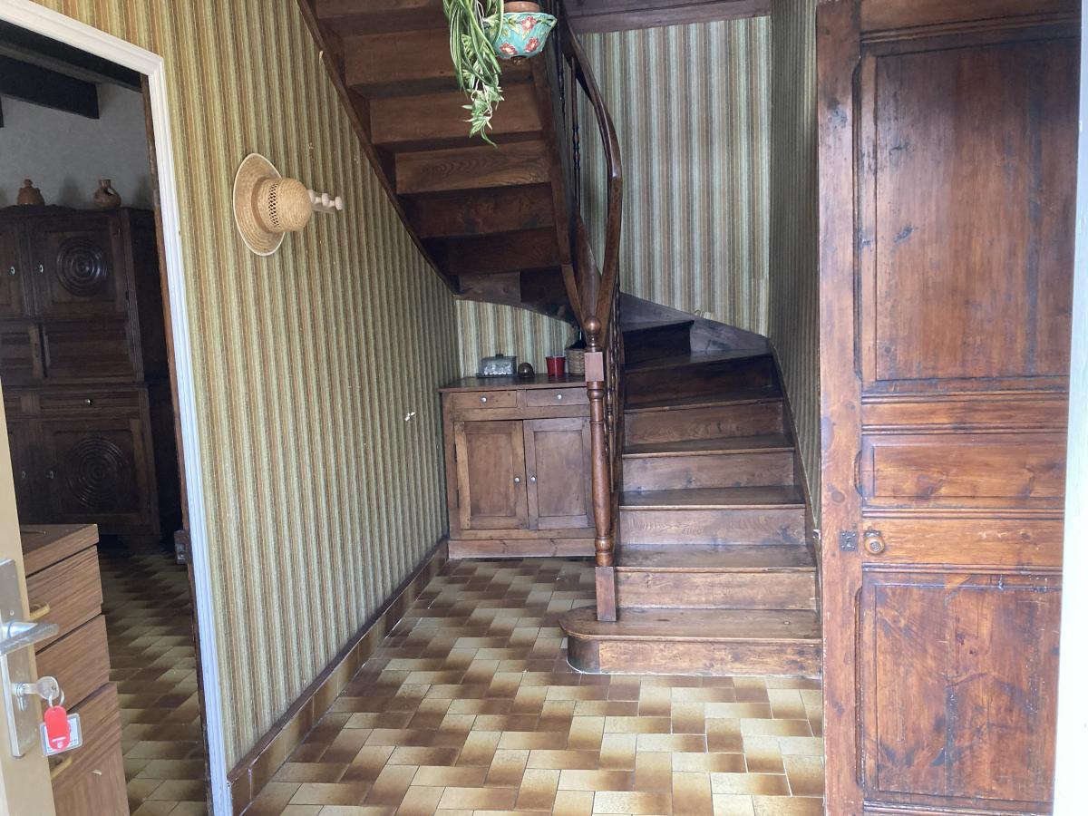 Au calme non loin des commodités et du lycée de Pommerit maison avec travaux disposant d'un potentiel d'environ 85 m² habitables composée :