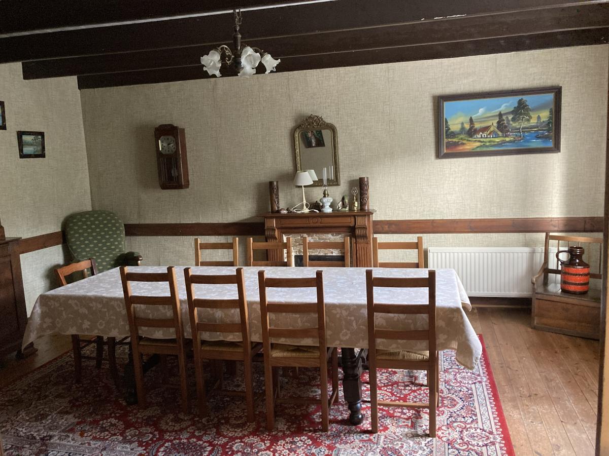 - au rez-de-chaussée : d'un hall d'entrée, cuisine/salle à manger, salon avec conduit de fumée, salle de bain avec WC, espace buanderie
