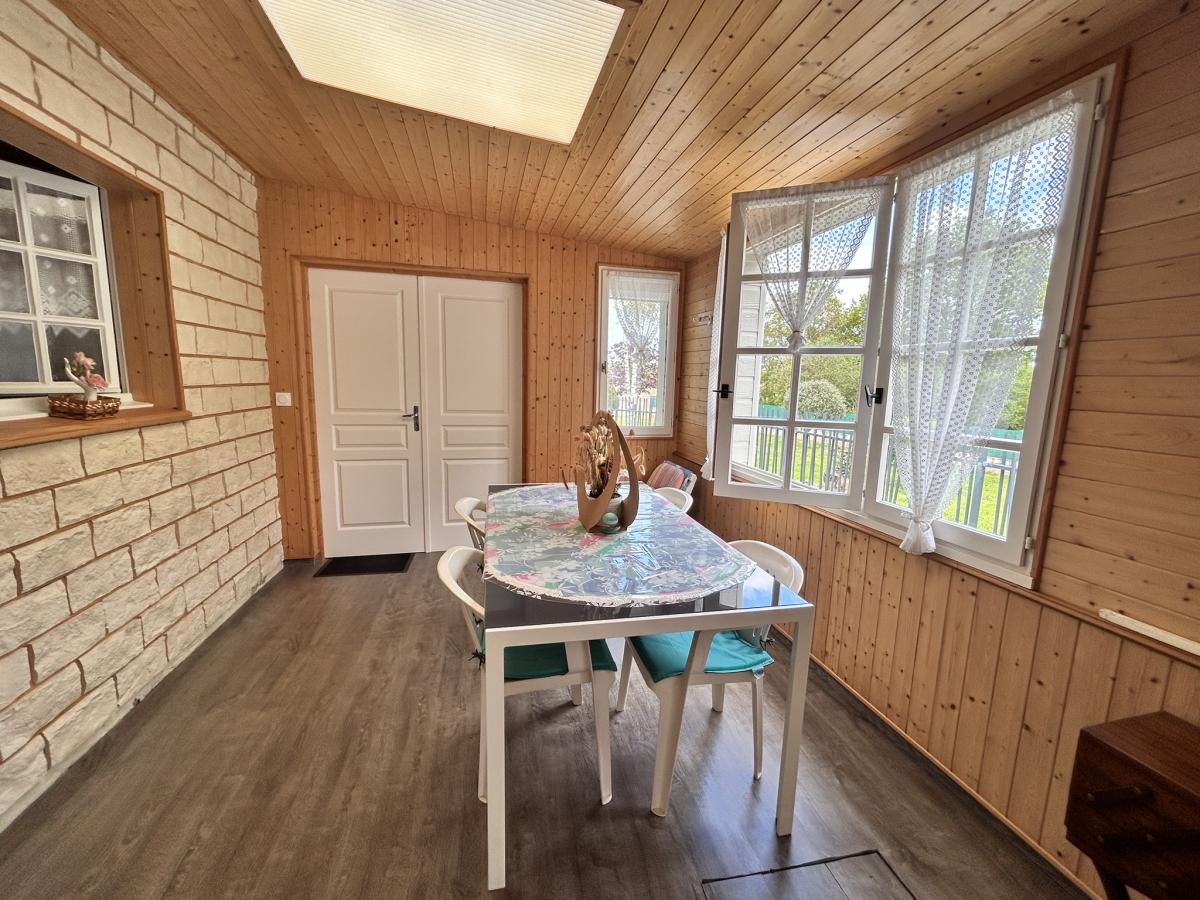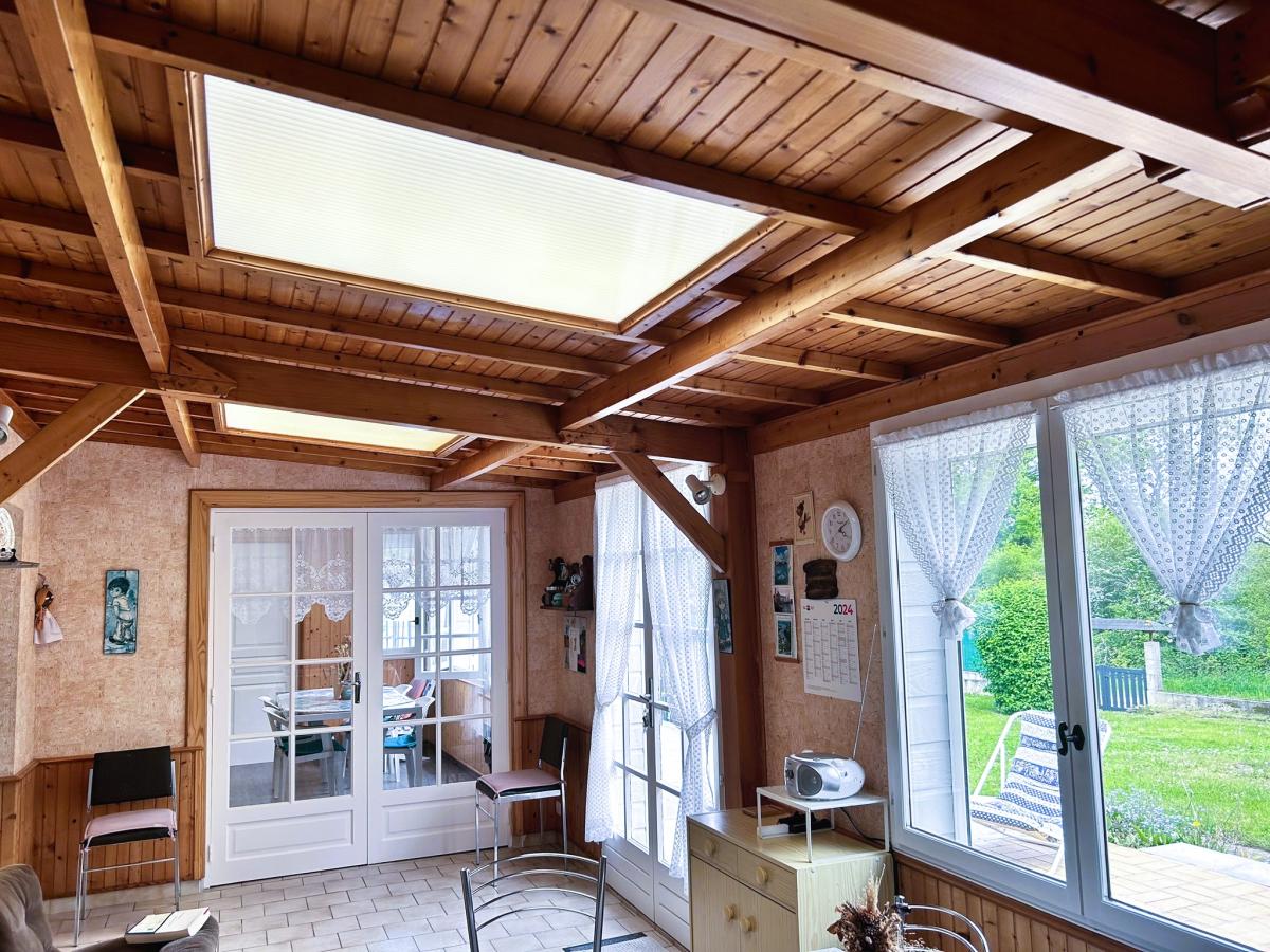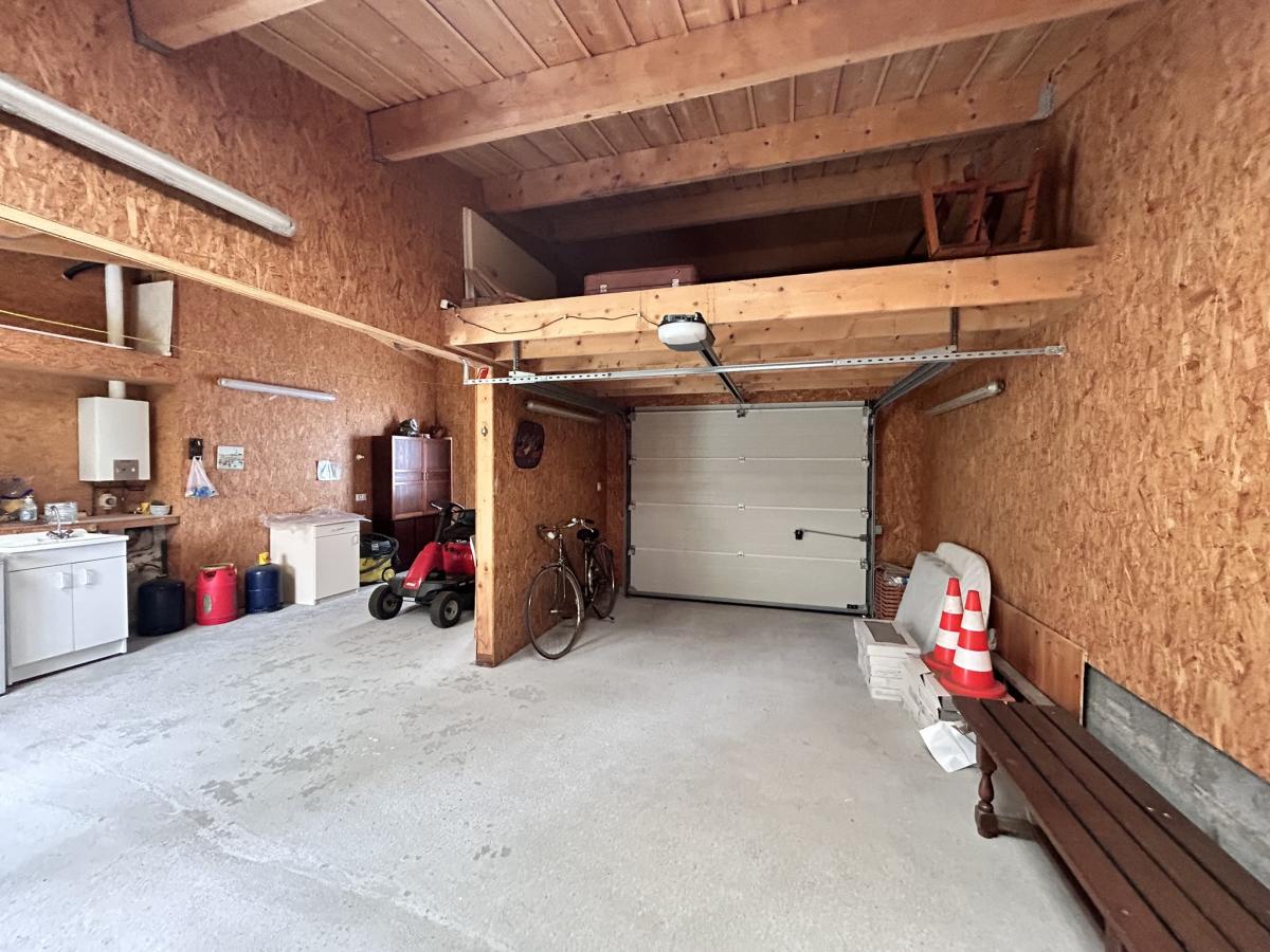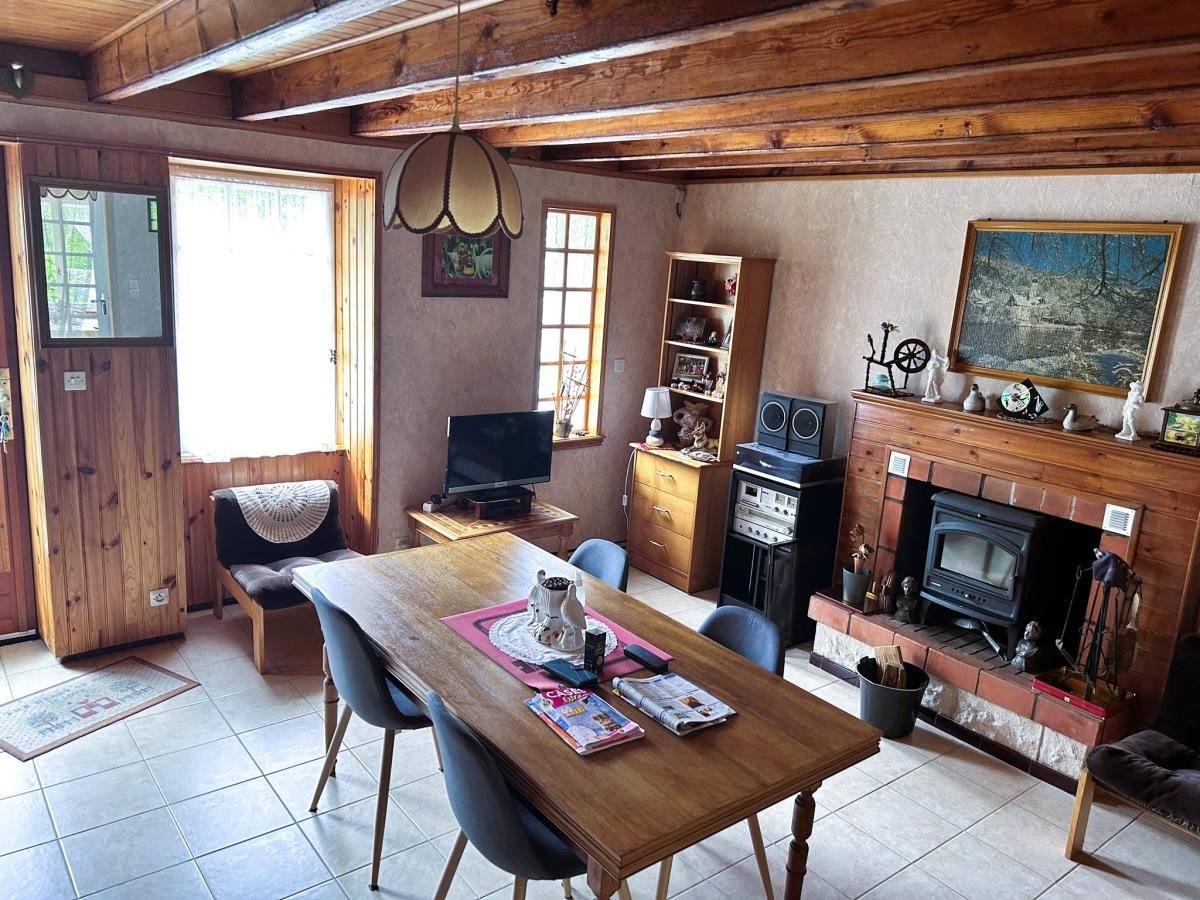 Au rez-de-chaussée : un salon avec poêle à bois (24 m²), cuisine aménagée lumineuse ouverte sur le jardin (20 m²), un séjour, une salle d’eau, un WC indépendant. A l'étage : deux chambres. Garage avec portail électrique (42 m²) spacieux avec potentiel de transformation en chambre supplémentaire. Terrasse. Assainissement individuel non conforme (travaux à prévoir).