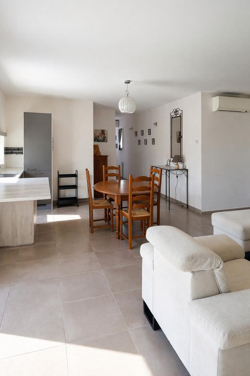 Maison de plain-pied construite en 2013, d’environ 90 m², idéalement située en centre de Sarrians, sur une parcelle d’environ 300 m². Elle offre une pièce de vie lumineuse avec cuisine aménagée ouverte sur une terrasse, deux chambres et une salle d’eau. Bien fonctionnel avec garage, buanderie et stationnement sur la parcelle. Climatisation réversible, chauffage gaz, double vitrage PVC et portail électrique.