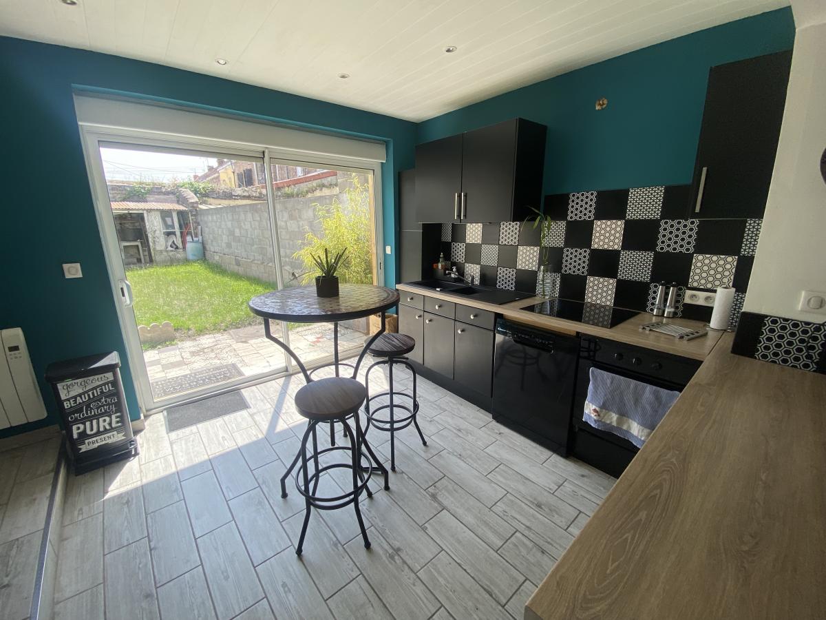 Maison de ville offrant un séjour de 40m² environ très lumineux ouvert sur cuisine équipée, Buanderie, WC.