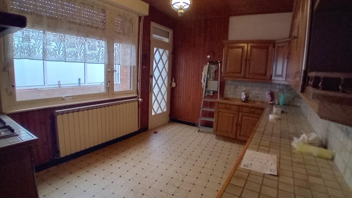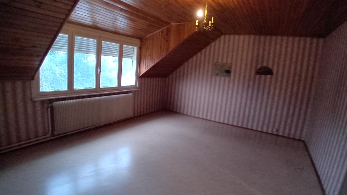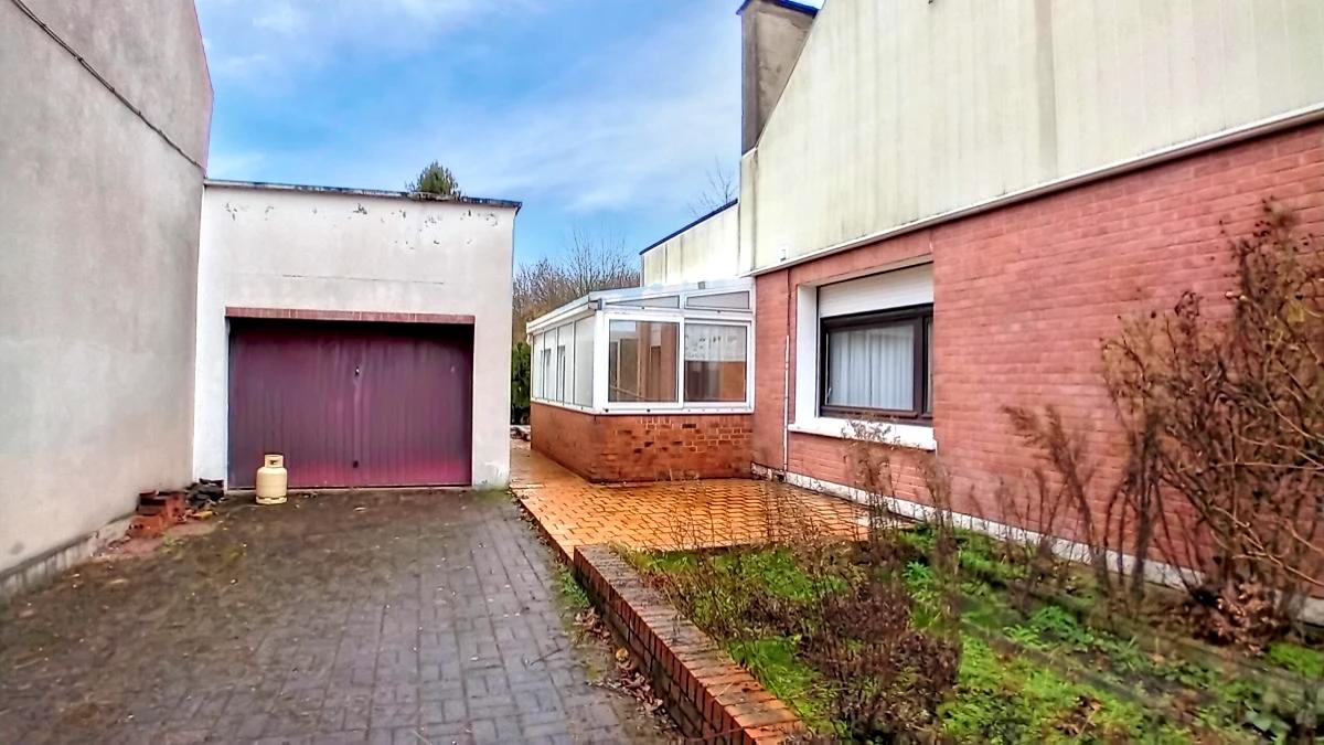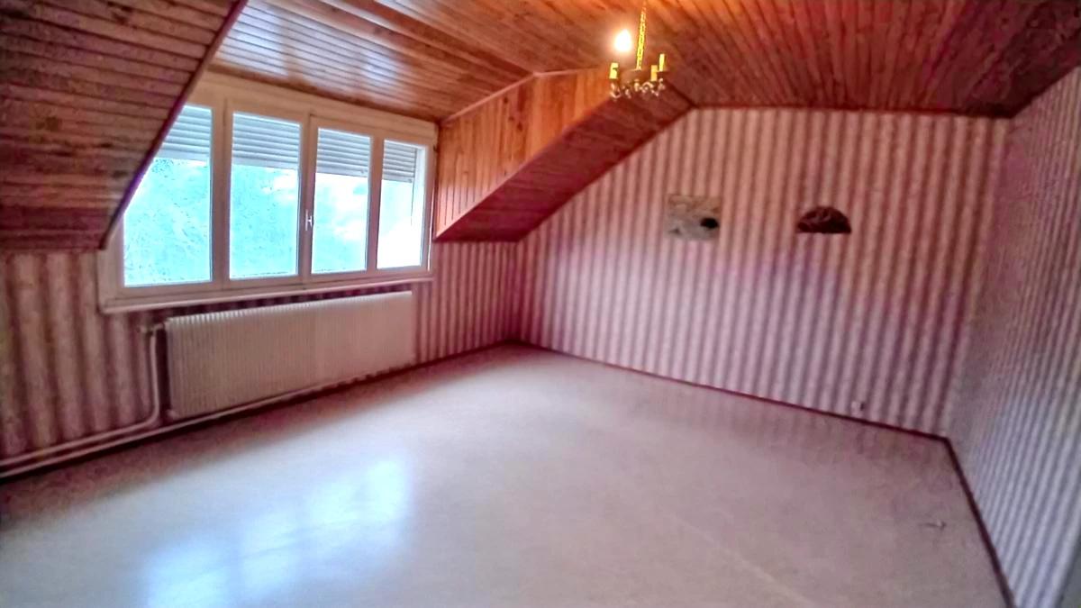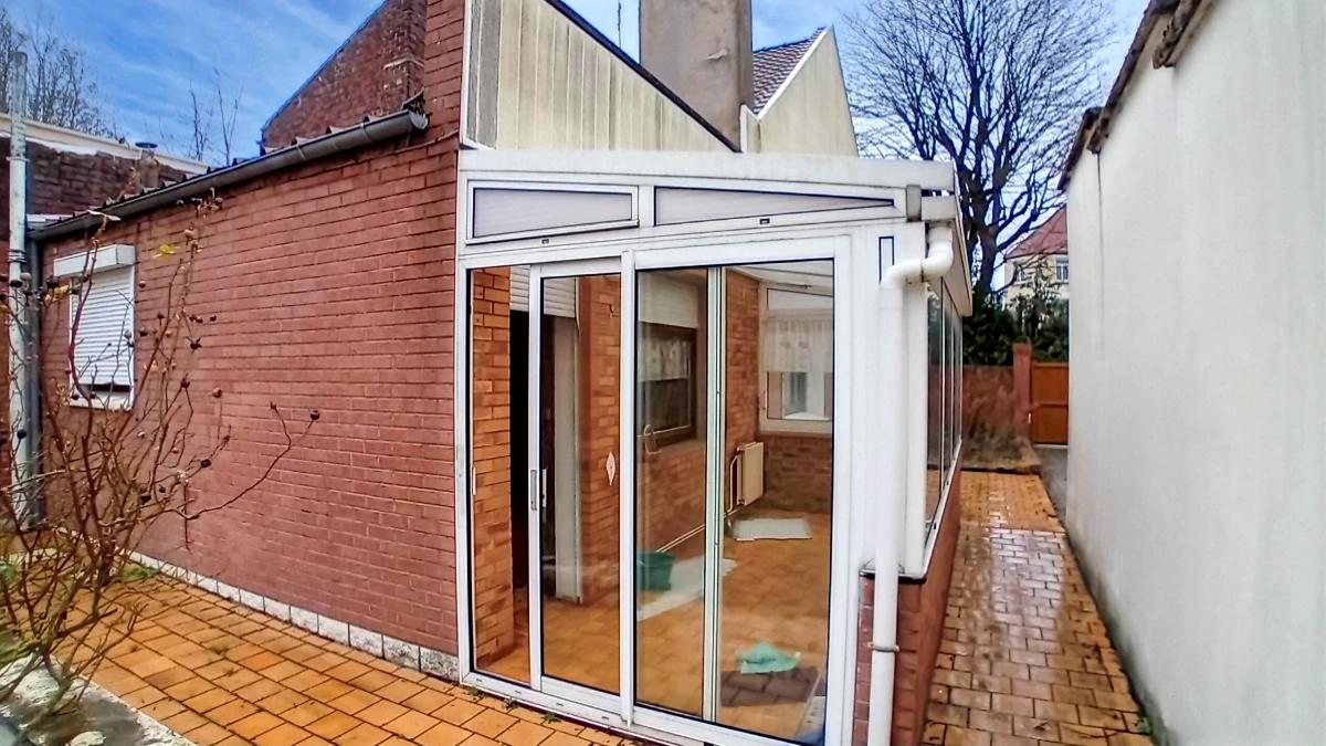 Maison de construction brique, toiture tuile, zinc et bac acier, menuiserie simple vitrage bois.
