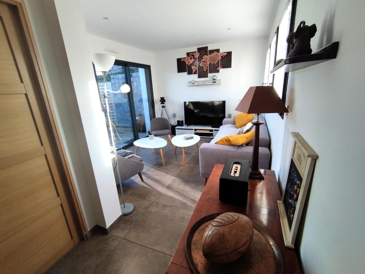 À l’extérieur, une cour ainsi qu’une agréable terrasse de 16 m² viennent compléter l’ensemble, permettant de profiter pleinement des beaux jours dans un environnement côtier recherché.