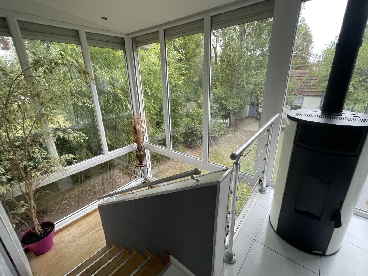 Dès l’entrée, la luminosité séduit grâce à une magnifique cage d’escalier vitrée menant à un espace de vie chaleureux composé d’un salon-séjour avec poêle à granulés et d’une cuisine ouverte aménagée et équipée. L’agencement intelligent permet de bénéficier de trois chambres réparties sur les niveaux, chacun disposant de salle d'eau et WC, dont un espace en rez-de-jardin, idéal pour un studio indépendant, une activité professionnelle ou un adolescent en quête d’autonomie.