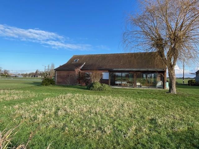 SAILLY SUR LA LYS, dans un cadre verdoyant, maison individuelle de plain-pied, bâtie sur une parcelle de 2500m² exposé Sud-Est (avec possibilité de 4200m² de terrain), comprenant une entrée, une belle pièce de vie de 31m², une cuisine équipée de 11m² (possibilité d'ouvrir), une véranda, 3 chambres, une salle de bains de 8m² et un grand garage avec mezzanine donnant accès aux combles. Double vitrage bois, chauffage électrique + poêle à granulés, volets électriques.