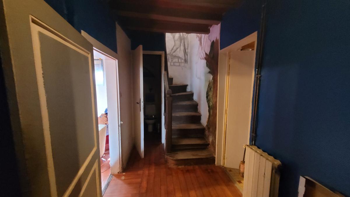 Vous découvrirez une première maison, ayant conservé son cachet de l'époque, comprenant une entrée, wc, un salon ou chambre, une salle à manger, une cuisine aménagée, une arrière-cuisine/buanderie, une salle d'eau. A l'étage, un palier distribuant deux chambres et un bureau. Courette sur l'avant sans vis à vis.